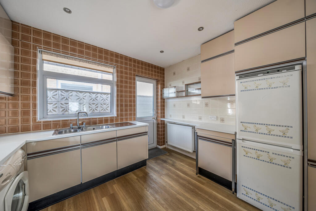 This is a 3 bedroom detached bungalow in Corfe Mullen, Dorset. The property is located in a good location, close to schools and transportation. The property is in need of some renovation, particularly the kitchen and bathroom. The property has a good sized garden with a patio area and a shed. The property is listed for £600,000, which seems a little high given the condition of the property.