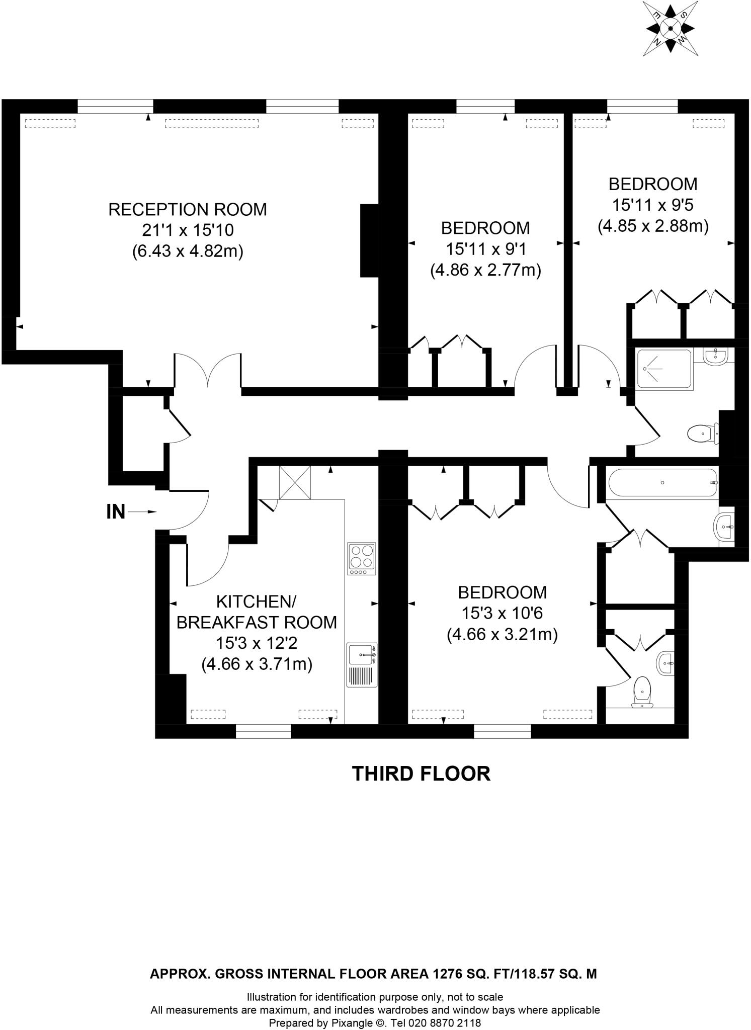 A stunning three double bedroom apartment boasting classic high ceilings on the third floor of this beautiful period building.