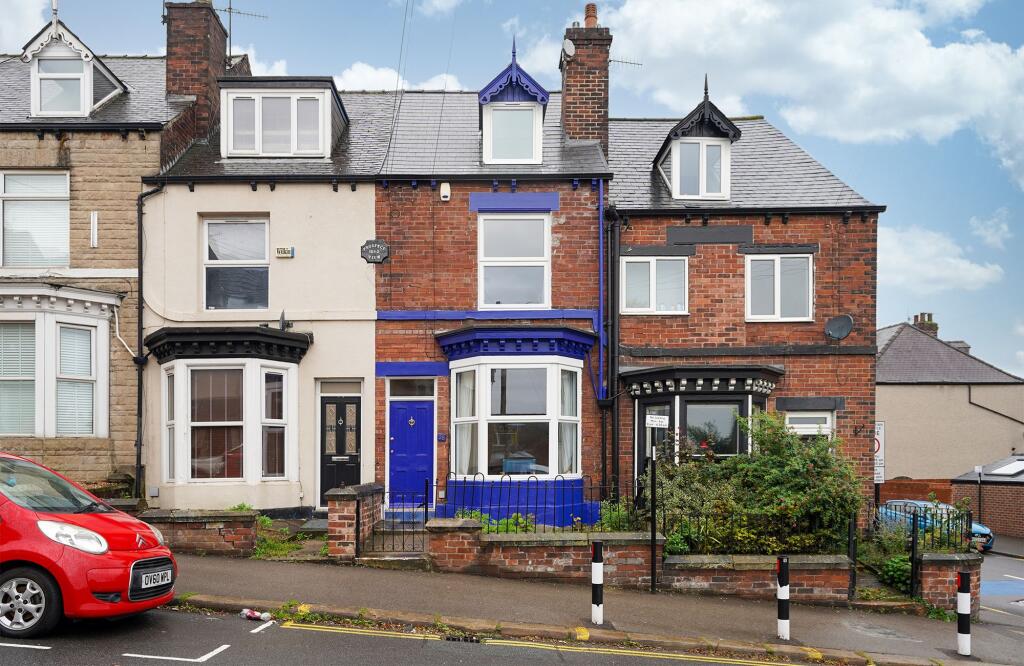 This is a traditional terraced property located in the popular Broomhill And Sharrow Vale area of Sheffield. The house offers four bedrooms and two bathrooms, making it suitable for families. The property benefits from a garden and is conveniently located near schools, shops, and transportation. While generally well-maintained, some areas could benefit from cosmetic improvements. Overall, this property presents a good opportunity for buyers looking for a home in a sought-after location.