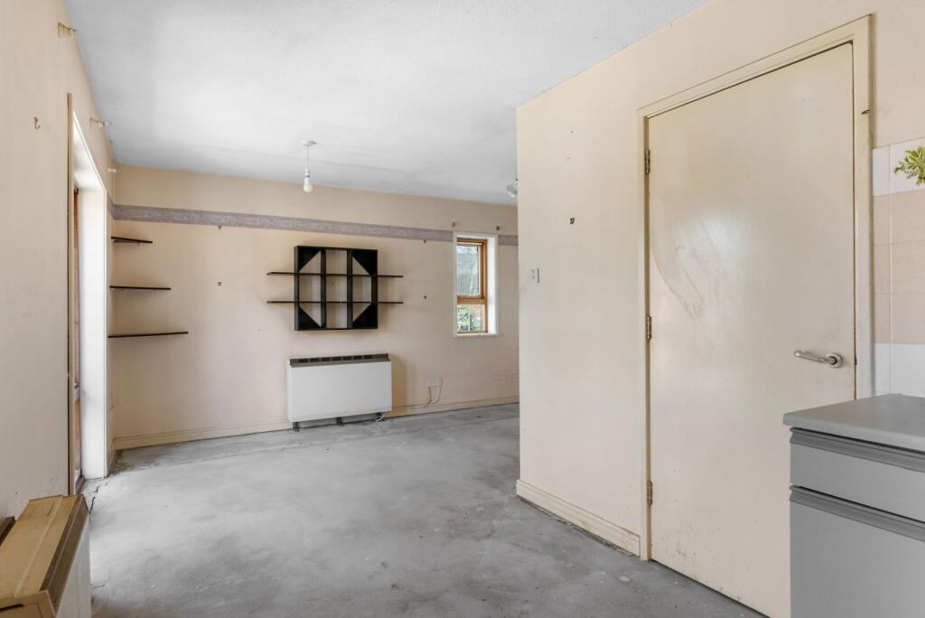 The property is a studio flat located in King’s Hedges, Cambridge, with a list price of £150,000. The property is in need of significant renovation. The kitchen and bathroom are dated and require modernisation. The walls show signs of wear and tear, and the flooring appears worn. The overall condition suggests a property requiring substantial investment to bring it up to a modern standard.