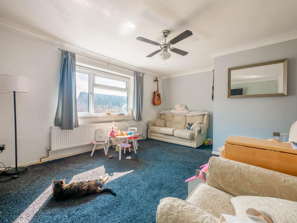 Spacious top floor flat with 2 bedrooms, study, loft space, communal parking & gardens. Spacious living room. Ideal location near schools & train station. Perfect for first-time buyers.