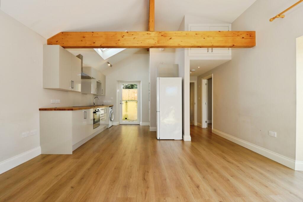 The property appears to be newly built or recently renovated to a high standard. The finishes are modern and the property looks well-maintained. The kitchen and bathroom are contemporary. There is a small, enclosed rear garden.