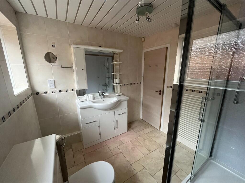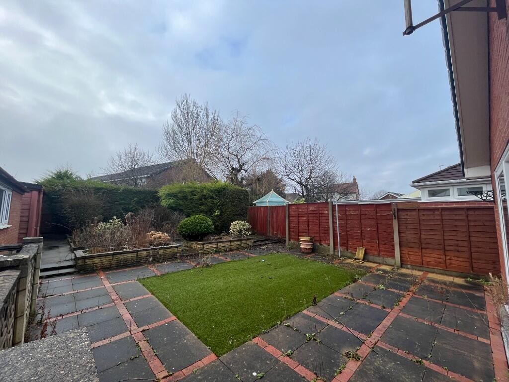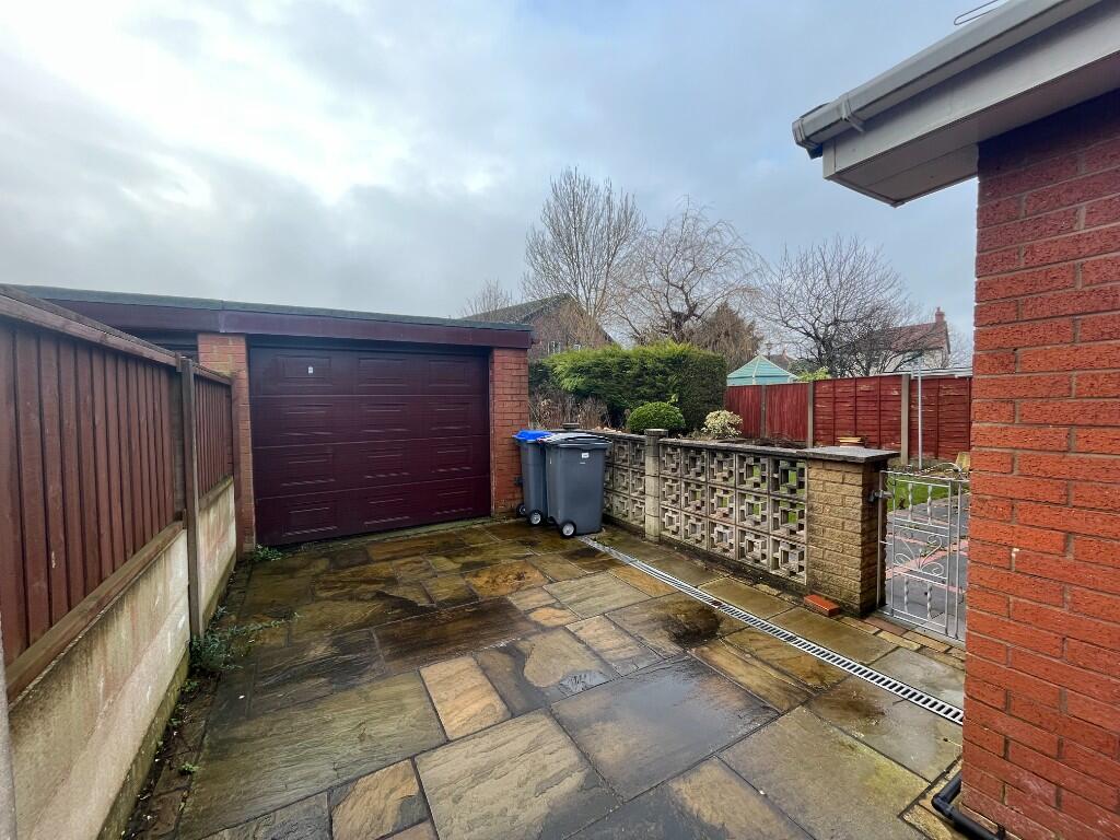 This two-bedroom property in Blackpool, Lancashire is presented as a semi-detached bungalow. The property benefits from an attached garage and garden, although the size of the land is not specified. The provided images show a house that appears structurally sound but is in need of some modernisation. The kitchen is functional but shows its age, while the bathroom appears to have recently undergone renovation. Other rooms, however, showcase dated decor, including carpets and wallpaper. The presence of built-in wardrobes in the bedrooms is a useful feature.