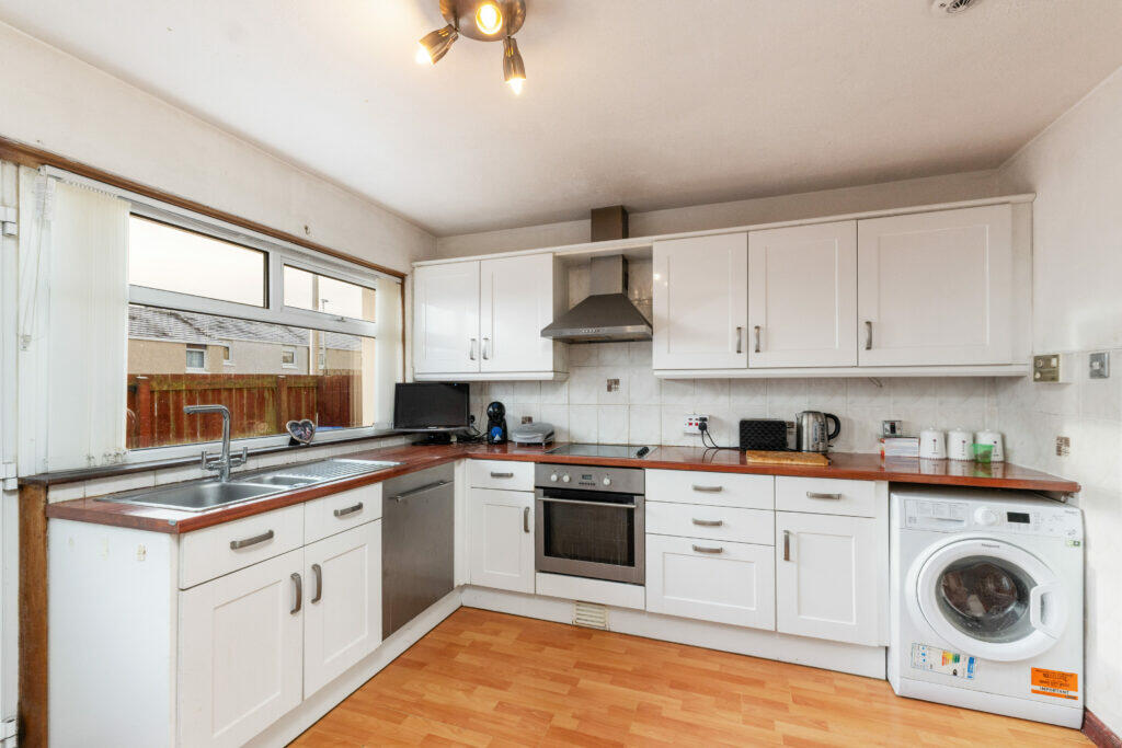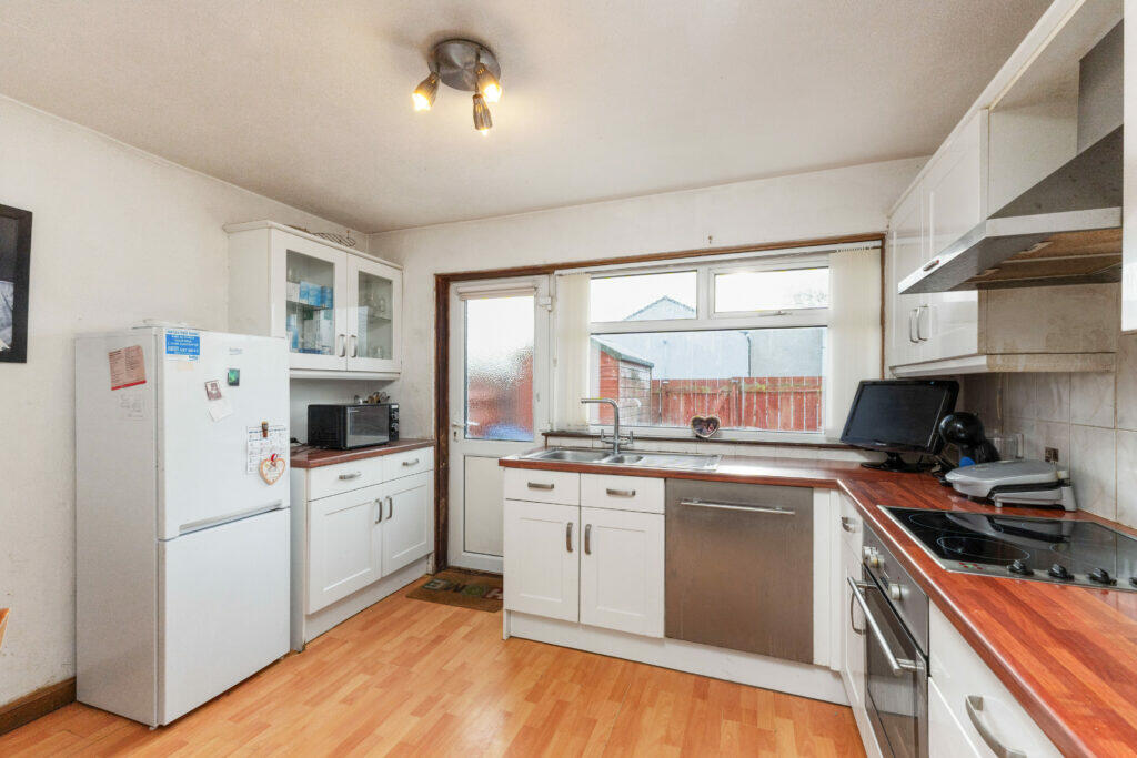 This property is a 3-bedroom, 2-bathroom house located at 4 Granby Avenue, Howden, Livingston, West Lothian, EH54 6LB. The property benefits from a small, enclosed rear garden, ideal for low-maintenance upkeep. The interior shows a property that is generally well maintained, although some aspects of the decor and fixtures may benefit from modernisation to enhance its overall appeal. The kitchen is functional and includes integrated appliances, and the bathrooms appear clean and tidy. The flooring throughout the house appears to be in good condition.