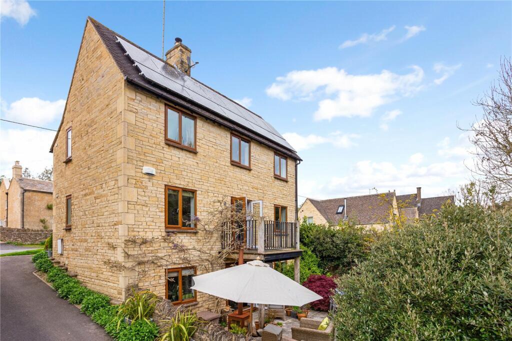 A detached home set within a glorious plot, with charming, large gardens and a double garage, in the heart of a beautiful Cotswold village of Shipton Oliffe.