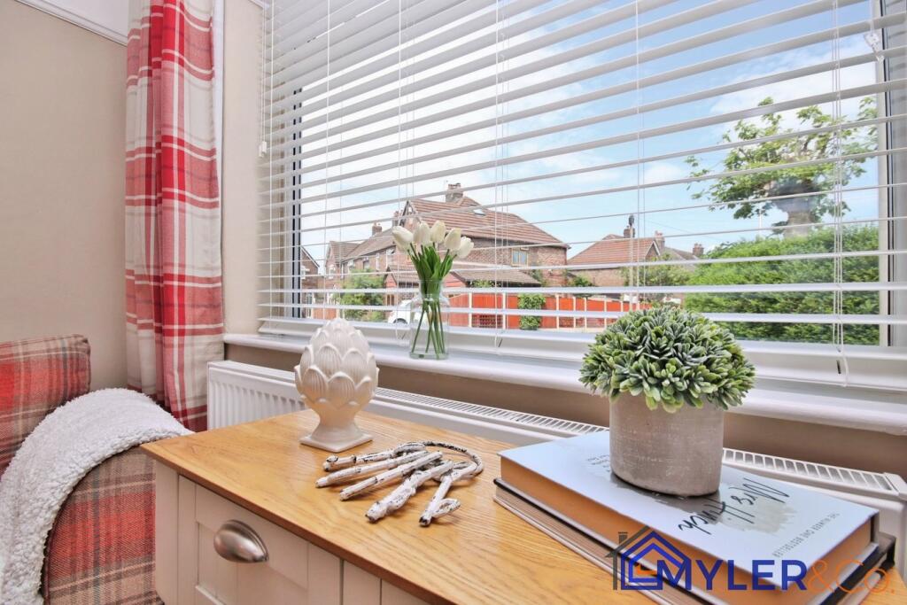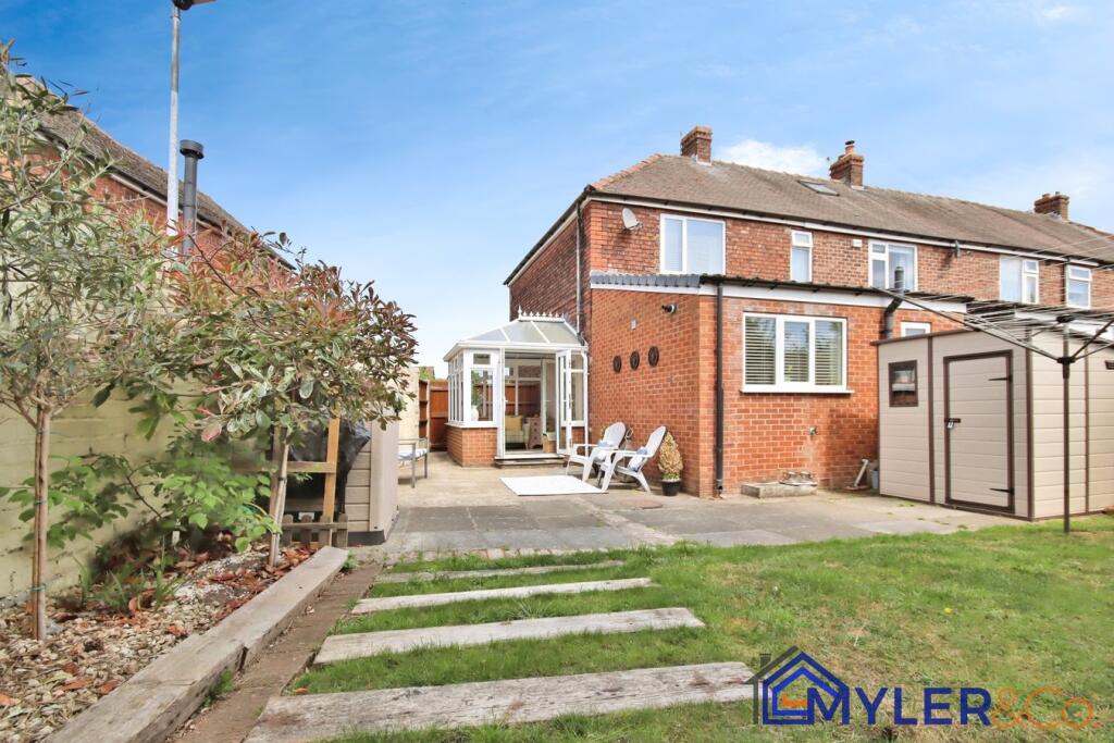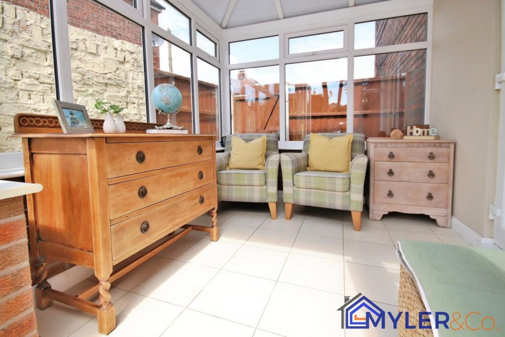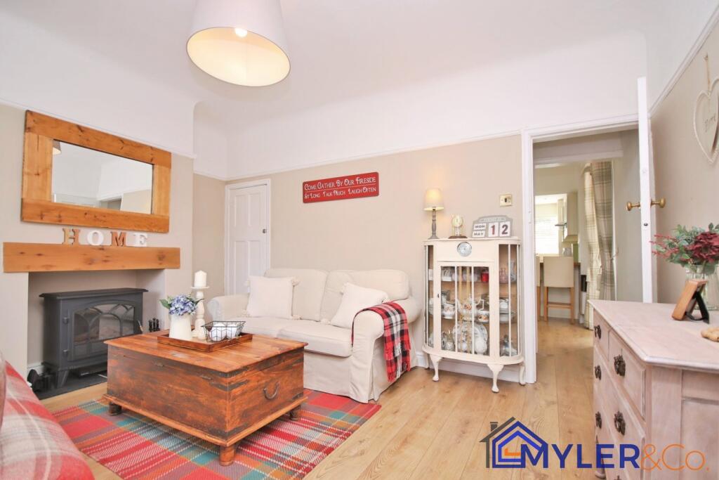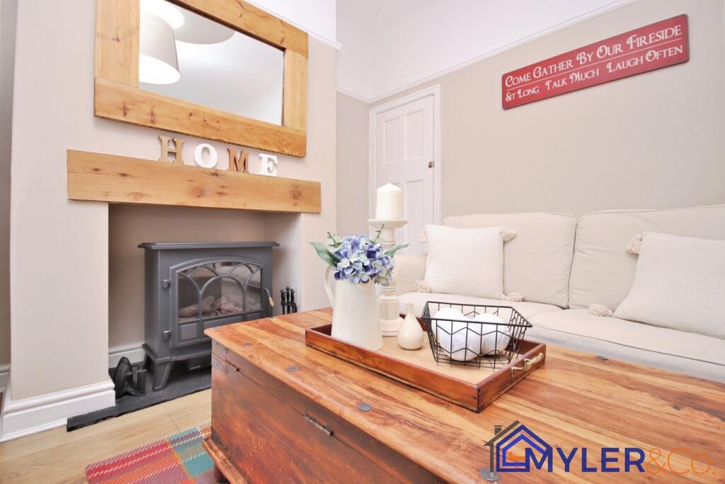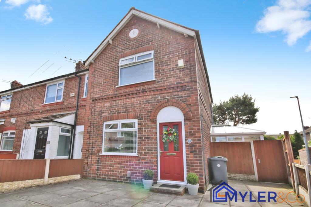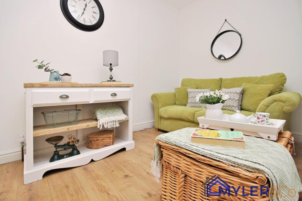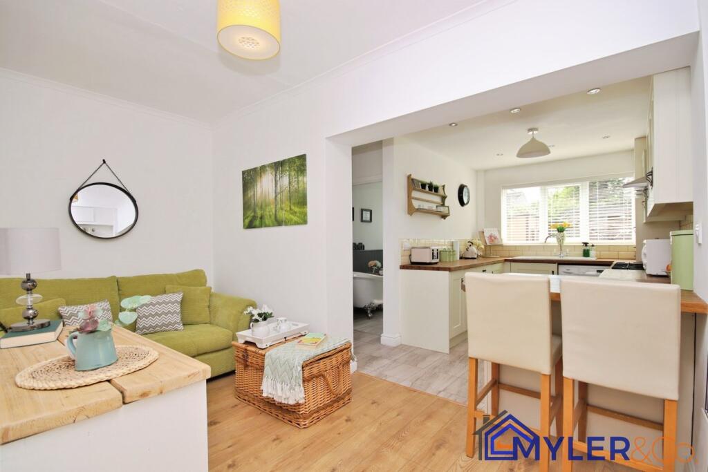 This immaculate end of terrace house, ideal for first-time buyers or downsizers, features an open-plan kitchen and dining area, a sunlit conservatory, two bedrooms, two stylish bathrooms, and a reception room.