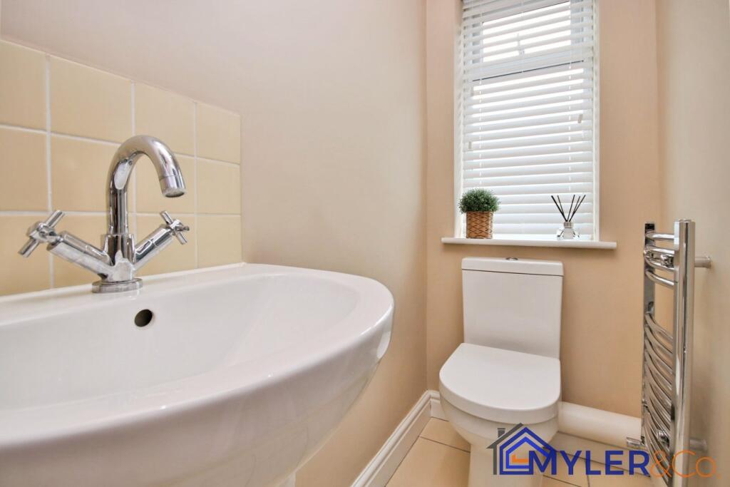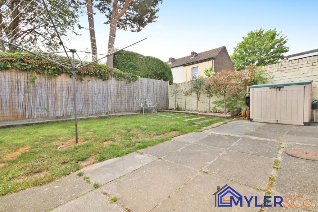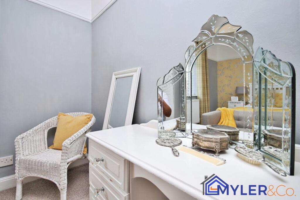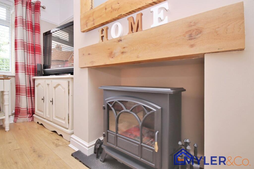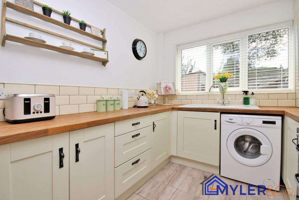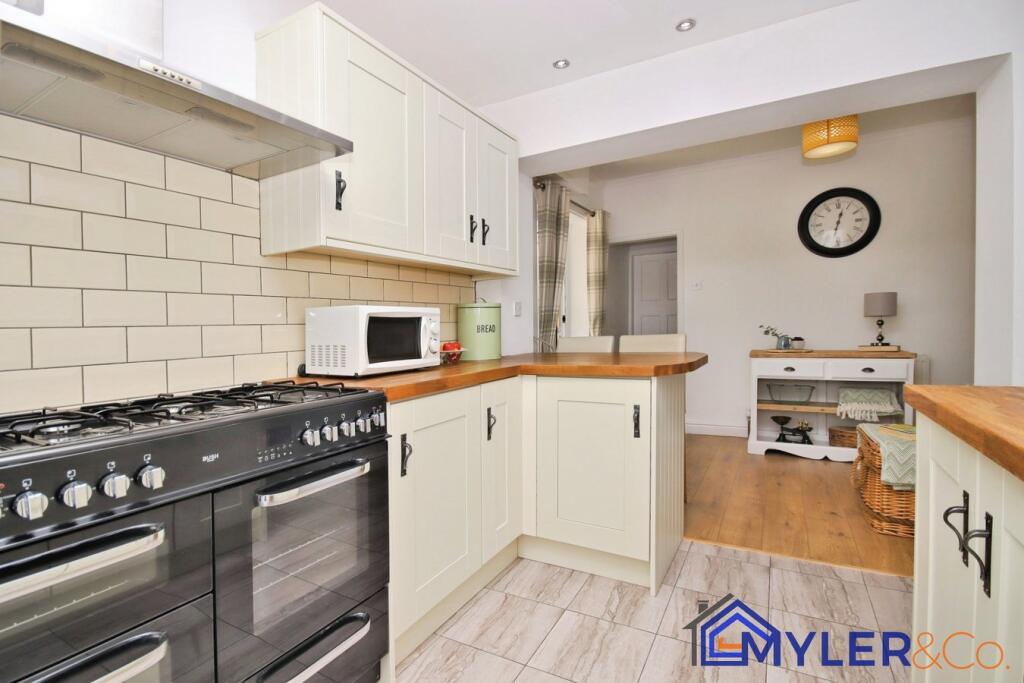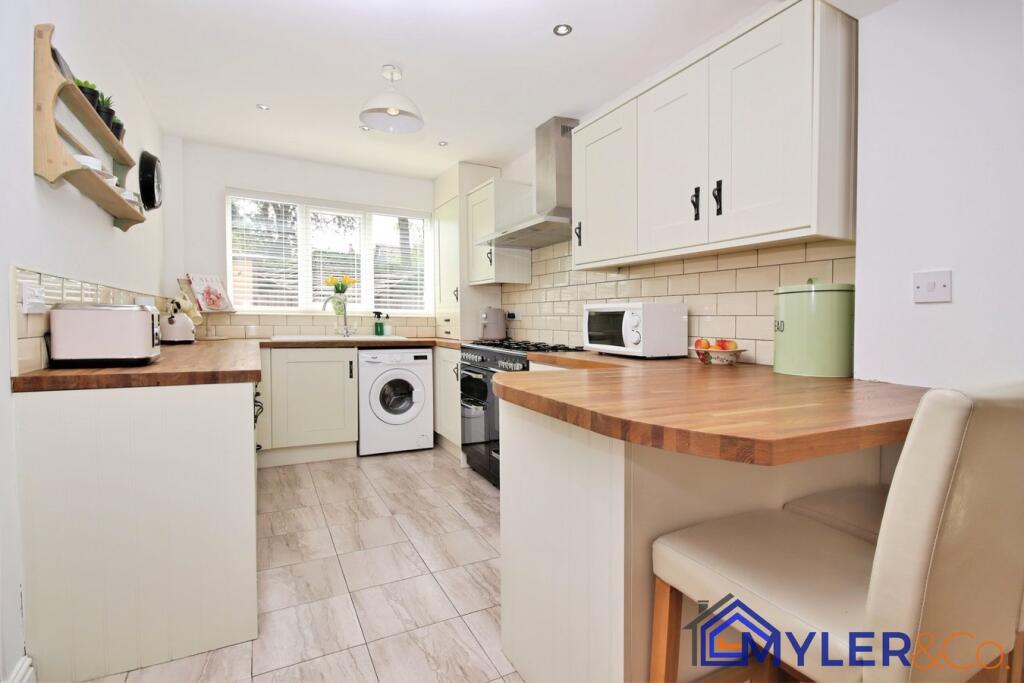 This immaculate end of terrace house, ideal for first-time buyers or downsizers, features an open-plan kitchen and dining area, a sunlit conservatory, two bedrooms, two stylish bathrooms, and a reception room.