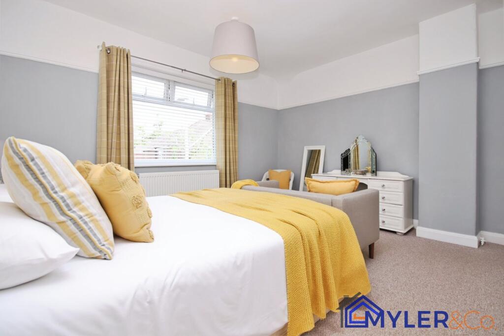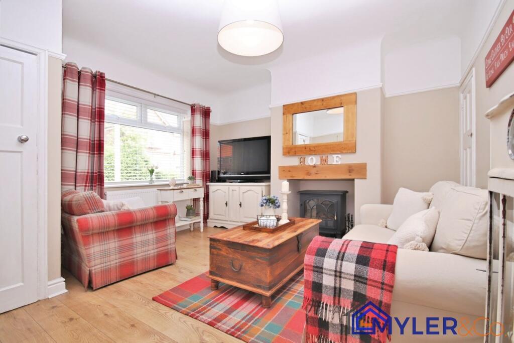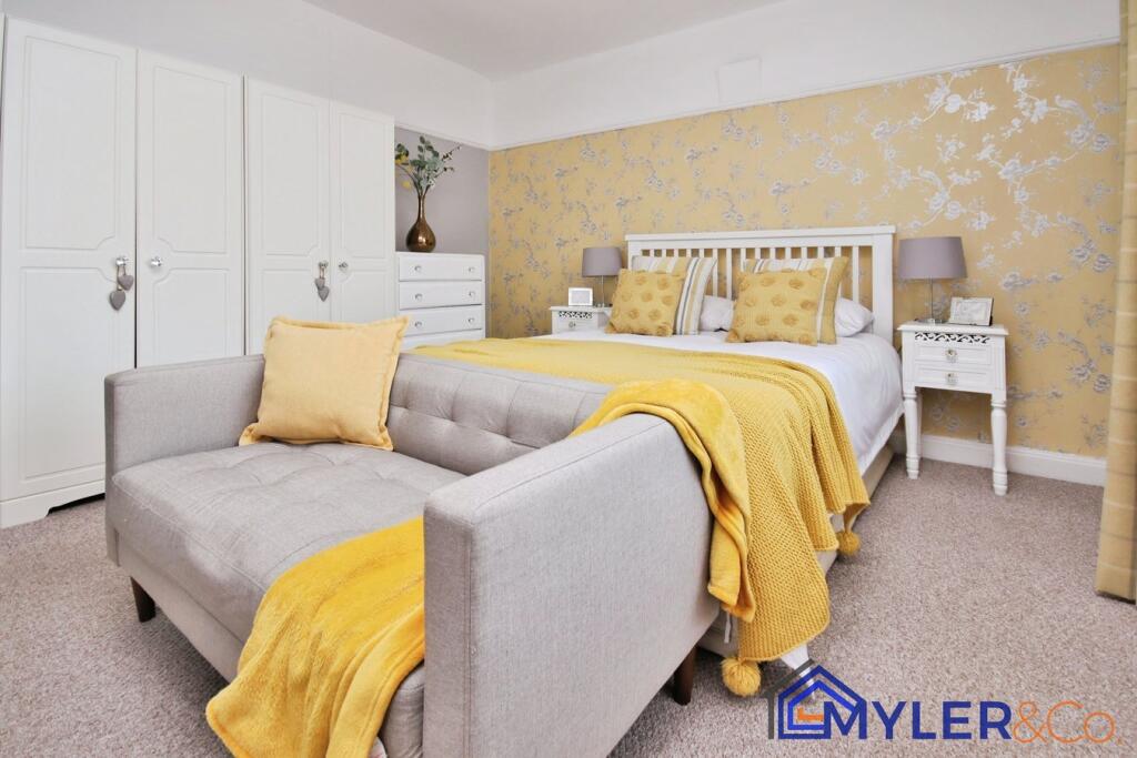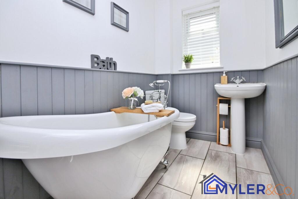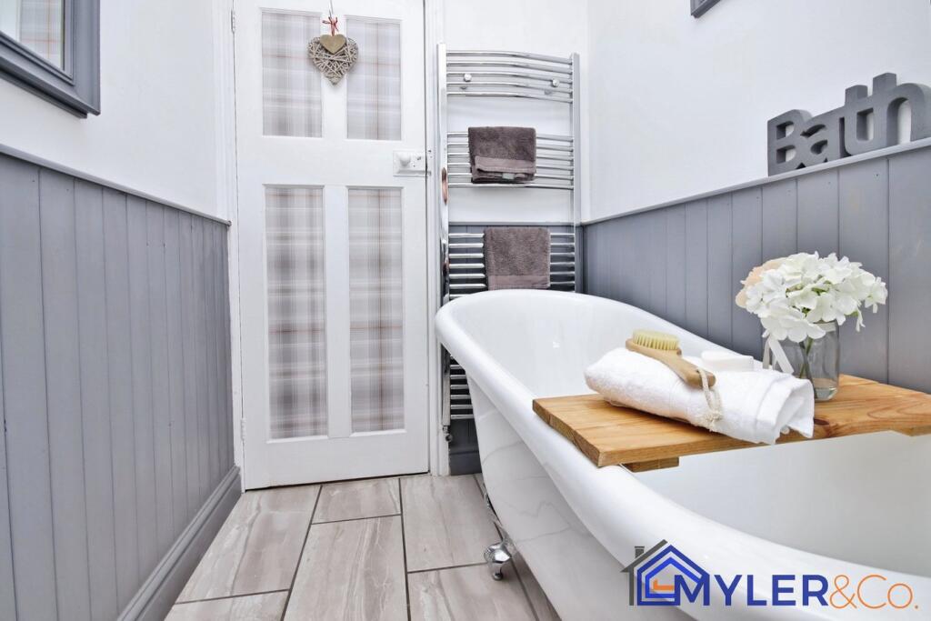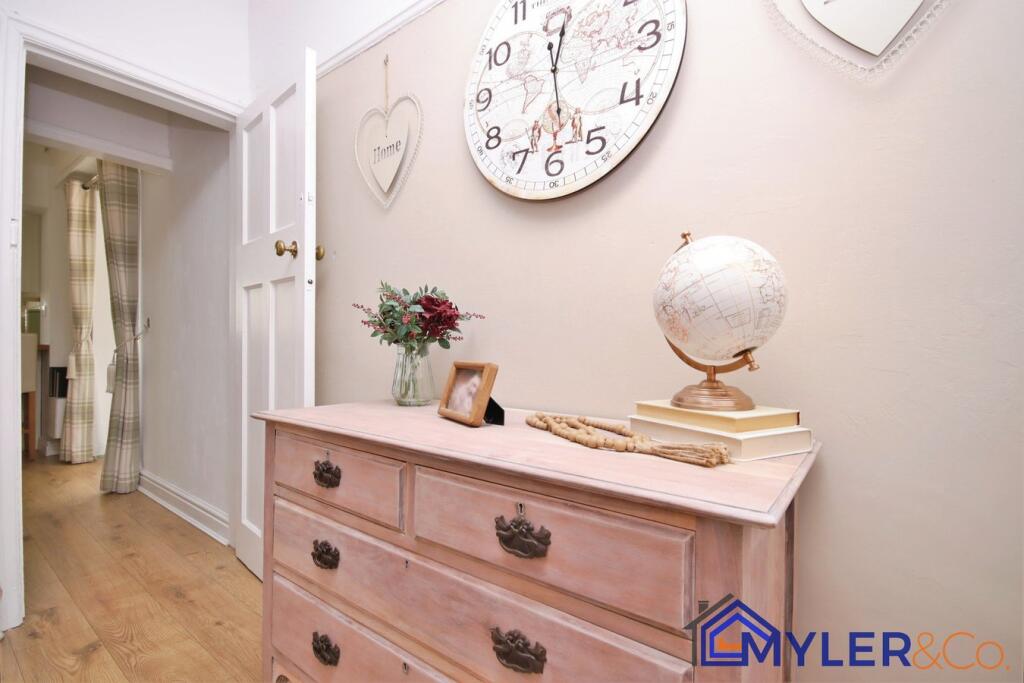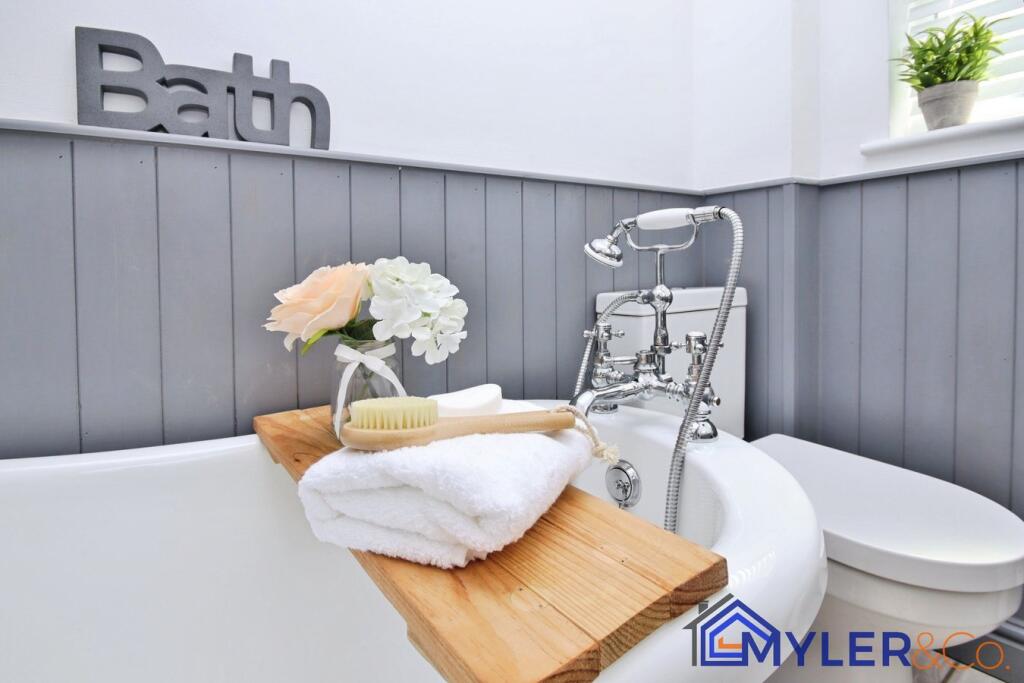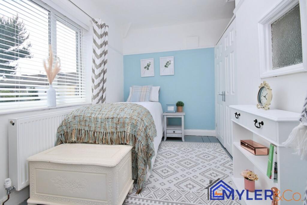 This immaculate end of terrace house, ideal for first-time buyers or downsizers, features an open-plan kitchen and dining area, a sunlit conservatory, two bedrooms, two stylish bathrooms, and a reception room.
