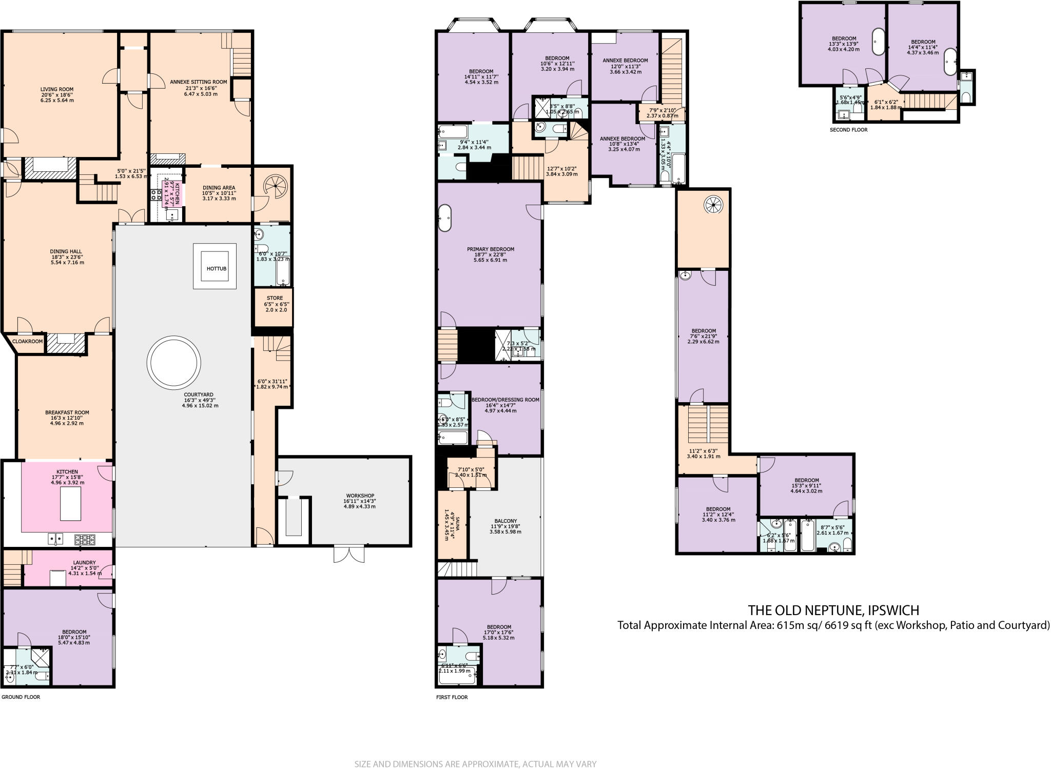 This property is a 13-bedroom, 12-bathroom terraced house located in Ipswich, Suffolk. The property boasts 7,926.75 sqft of living space and a 6,619 sqft plot. The list price is £995,000. The property is a period property, exhibiting significant historical character and charm. The images show exposed beams, original features, and a traditional courtyard garden. The property appears to be well-maintained, although some areas may benefit from modernisation to meet contemporary tastes. The scale of the property is substantial, suggesting it may be suitable for a large family or as a unique investment opportunity. The location in Ipswich, Suffolk offers proximity to various amenities. Several schools are within a reasonable distance, including St Helen’s Primary School and St Margaret’s Church of England Primary School, both rated ‘Good’ by Ofsted. Transport links are also relatively close, with Ipswich train station approximately 1.92km away. Given the size (7,926.75 sqft), age, and historical features of the property, the list price of £995,000 requires careful consideration. The average price per sqft in the area is £492.00. While this property significantly exceeds the average size, the high list price may be justified by its unique character, the number of bedrooms and bathrooms, and the substantial plot size. However, comparative analysis with similar properties in the area is needed to fully assess the value. The provided nearby listings are mostly flats or apartments and do not provide a useful comparison due to the significant difference in property type and size. More information on comparable large period properties in Ipswich would be beneficial to provide a more accurate assessment of the list price. The property includes a substantial courtyard garden, which contributes positively to its overall appeal and value.