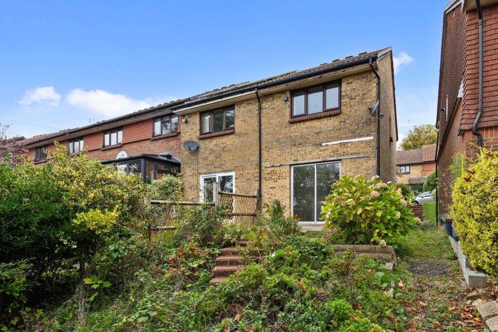 Two bedroom end terrace house in a central Lewes cul de sac with allocated parking, a mature garden, and countryside views.