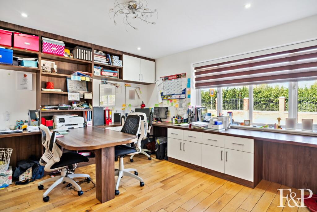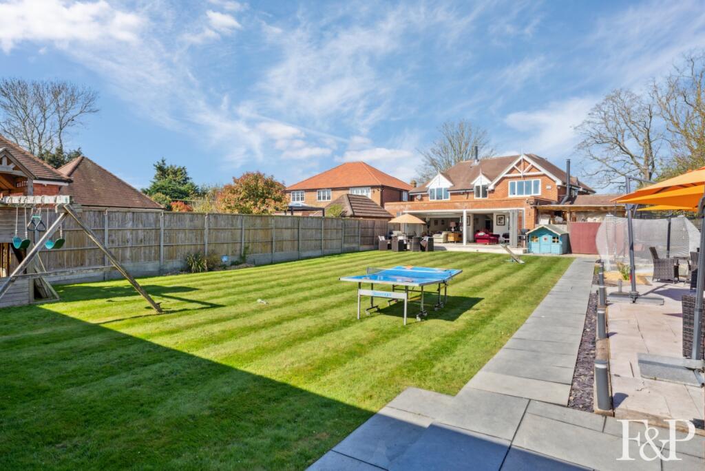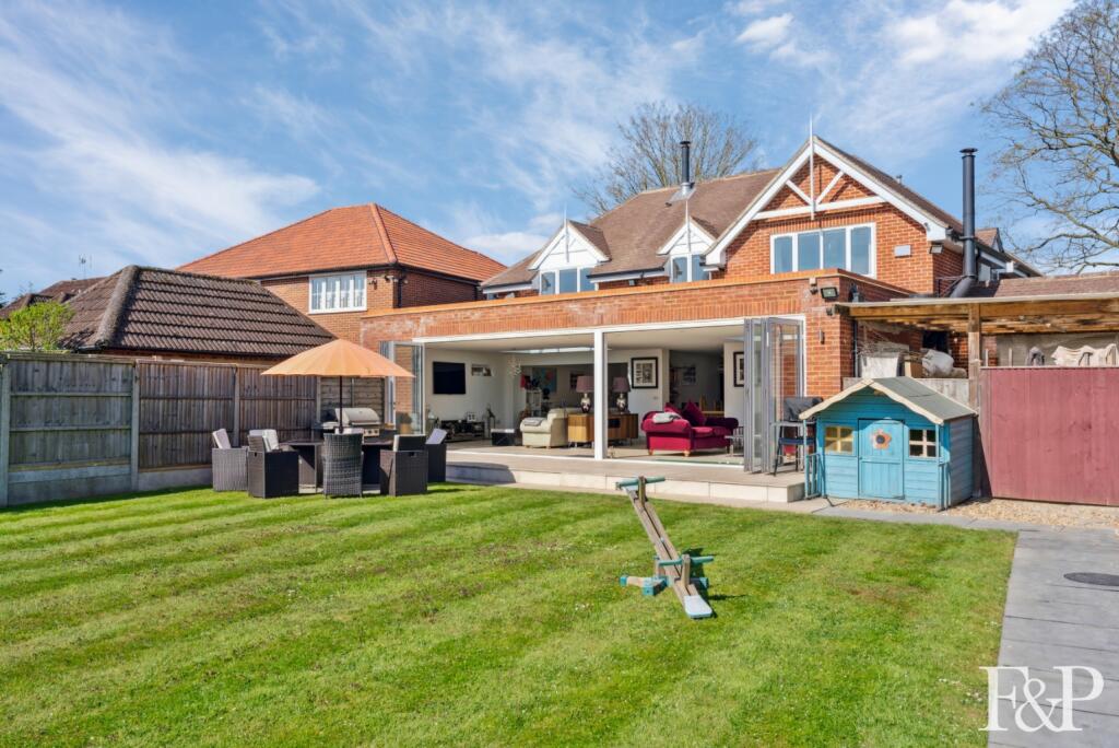 This property is a detached house located in Egham, Surrey. It has 5 bedrooms and 4 bathrooms, and covers 3,195.61 square feet. The plot size is 4,283 square feet. The property is listed at £1,650,000. The average house price in the area is £408,713, with an average price per square foot of £481. The property appears to be in excellent condition, with modern finishes and a well-maintained garden. The location is desirable, with good access to transportation and schools. Given the size, condition, and location, the list price appears to be at the higher end of the market, but not unreasonable. The property benefits from a large garden, a garage, and a swimming pool.