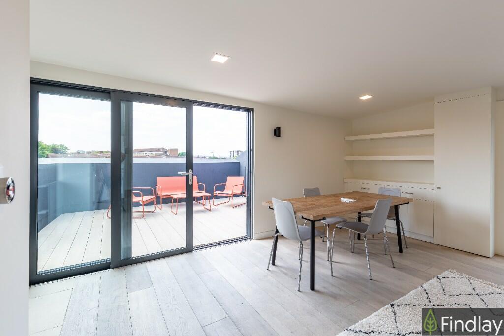 A slick and modern penthouse apartment with a large wraparound terrace providing city views, located right in the middle of everything that makes east London the epicenter of cool!