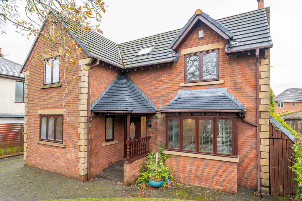 This is a detached property located on Broad Oak Lane in Penwortham, South Ribble. It features 4 bedrooms and 2 bathrooms. The property is listed for £450,000 by Roberts & Co Sales & Lettings. The house is located near several well-regarded schools and has good transport links, with Preston train station a short distance away. The property includes a garden, a double garage, and a conservatory. While generally well-maintained, some areas could benefit from modernisation. The asking price appears reasonable compared to the average property price in the area.