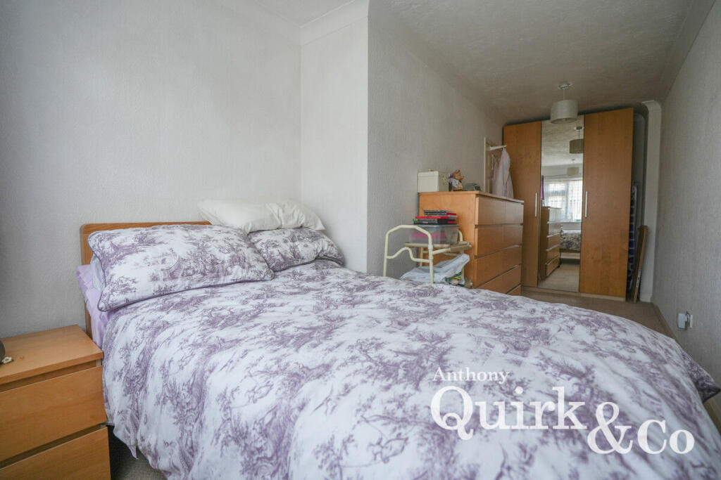 This two-bedroom bungalow is located on Wittem Road, Canvey Island. The property is listed for £325,000 and has a square footage of 774. The average price per square foot in the area is £353, while this property is listed at approximately £420 per square foot. The average property price in the area is £301,250, and the average square footage is 852. The property is located near several schools, including St Joseph’s Catholic Primary School and Castle View School. Benfleet station is the closest train station, at 3.74km away. From the images, the property includes a garage. The interior appears to be in reasonable condition, with a modern bathroom. However, the garden is overgrown and requires attention. The property could benefit from some modernisation.