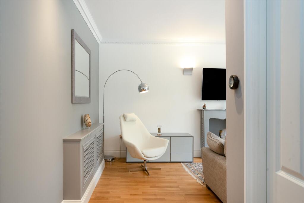 Beautifully refurbished apartment with wood flooring. This beautifully refurbished lateral apartment is set over the raised ground floor of a period conversion. The property comprises large reception room with floor to ceiling windows, modern fully fitted kitchen, bright double bedroom and mode...