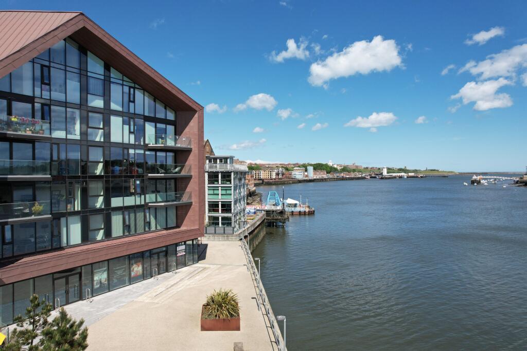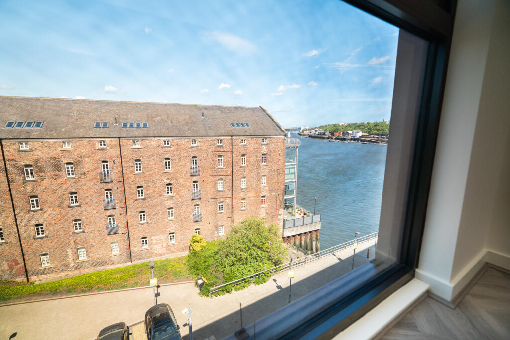 A stunning top-floor one-bedroom apartment with vaulted ceilings, river views, and exceptional upgrades – Smiths Dock, North Shields