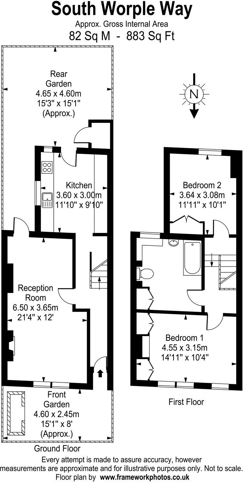 A two-bedroom Victorian house with a south-facing rear garden, close to Mortlake station.