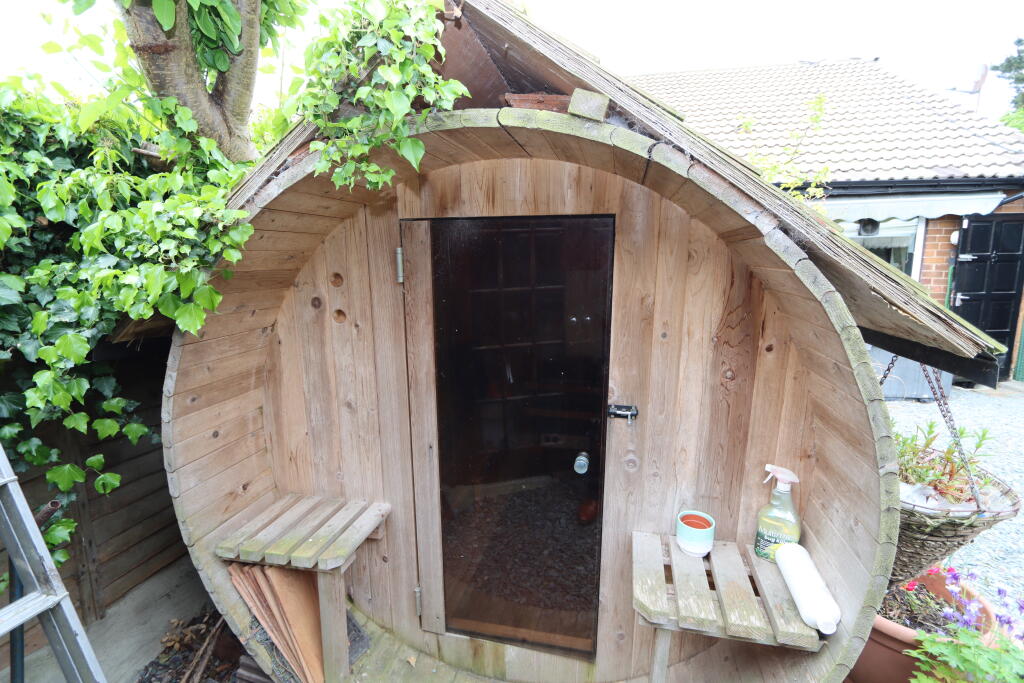 The property includes a garden, which is visible in the provided images. The garden appears to be of a reasonable size for a semi-detached bungalow, offering potential for outdoor use and relaxation. There is also a shed and sauna within the garden.