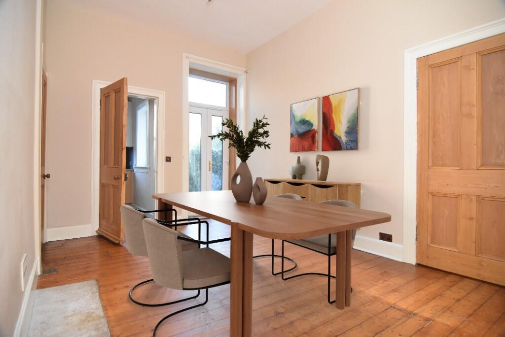 Situated on a quiet residential street, 22 Darnell Road is an exceptionally spacious main door flat which boasts a range of period features and private gardens to the front and rear.