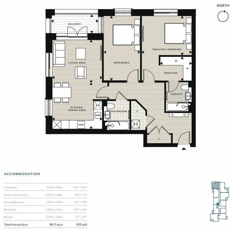 A North/West facing, two bedroom home in Lancelot Apartments. Impressive principal bedroom with dressing area, fitted wardrobes and ensuite. Stamp duty paid when you reserve at Knights Quarter this winter.*