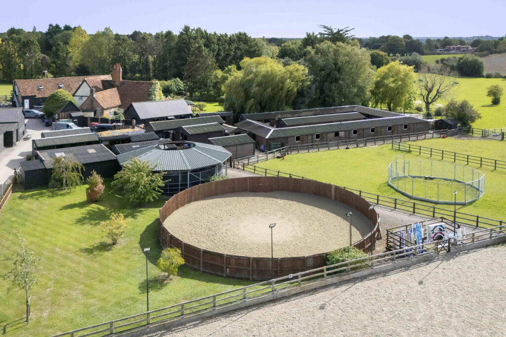 This is a substantial equestrian facility located in a desirable area of Hertfordshire. The property features a period house with five bedrooms and two bathrooms, along with extensive equestrian amenities including stables, paddocks, and a riding arena. While the property is generally well-maintained, the interior design and some appliances appear dated and may benefit from modernization. The extensive land and equestrian facilities make this property particularly appealing to horse enthusiasts. The location offers a blend of rural tranquility and convenient access to nearby towns and transportation links.