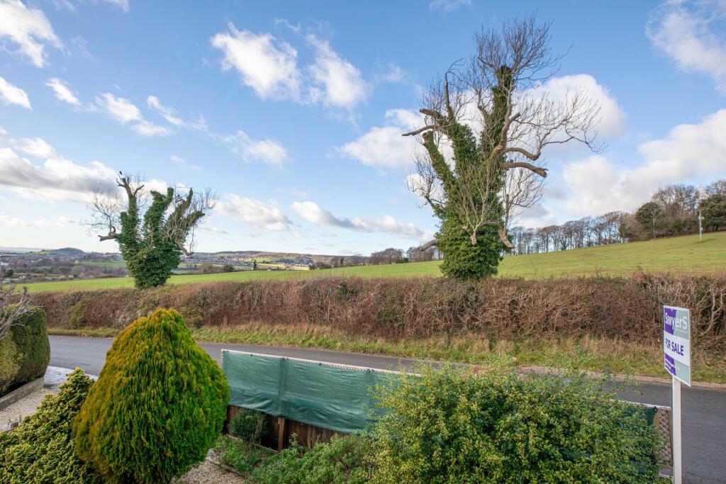 Elevated modern three bedroom detached home over looking fields. Sitting room, stylish kitchen and separate dining area opening to the conservatory, and wraparound gardens. Workshop/former garage, driveway parking, Southeast aspect rear garden with patio, mature borders, and gated side access.