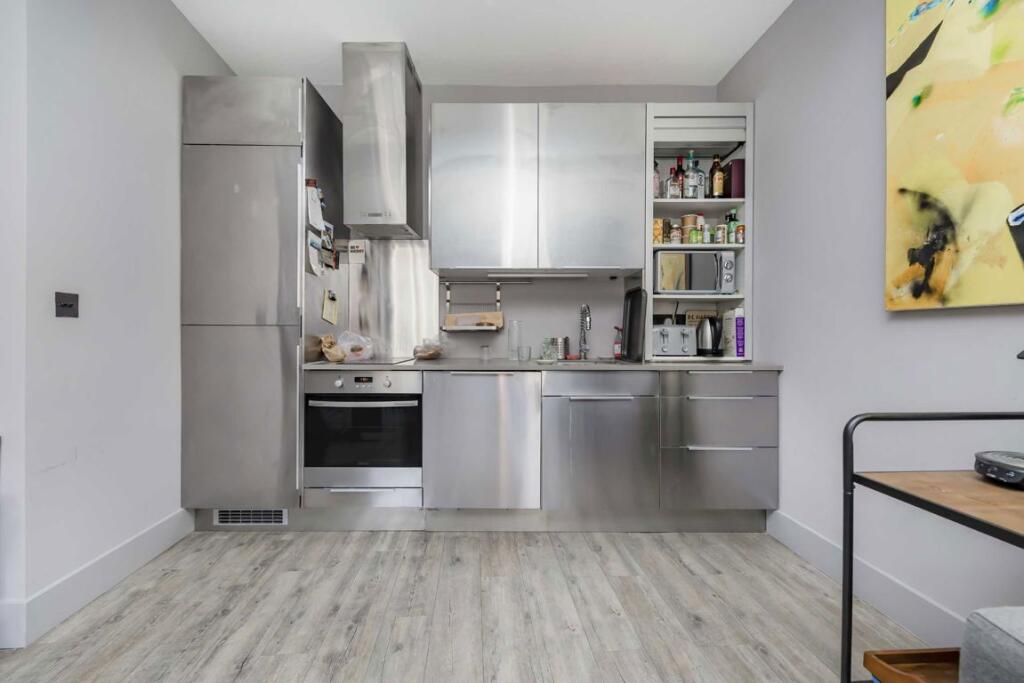 A stylish one double bedroom apartment to let in Aldgate. This apartment has a modern finish throughout, wooden flooring and a large open plan living area with double height ceilings. There is also a lovely enclosed private patio area.