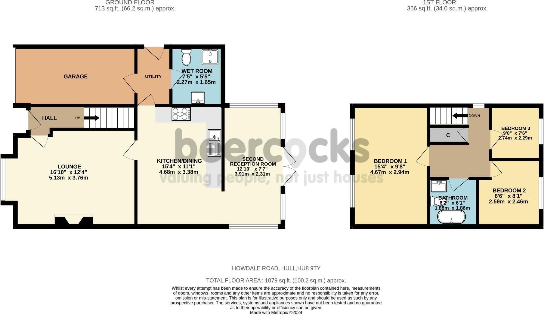 This is a detached property on Howdale Road, Hull, featuring three bedrooms and two bathrooms. The house appears to be in good condition, with modern interior design and a well-maintained garden. It benefits from off-street parking and a garage. The location offers proximity to schools and transportation links. The asking price of £245,000 seems reasonable given the property’s size, condition, and location relative to the local market.