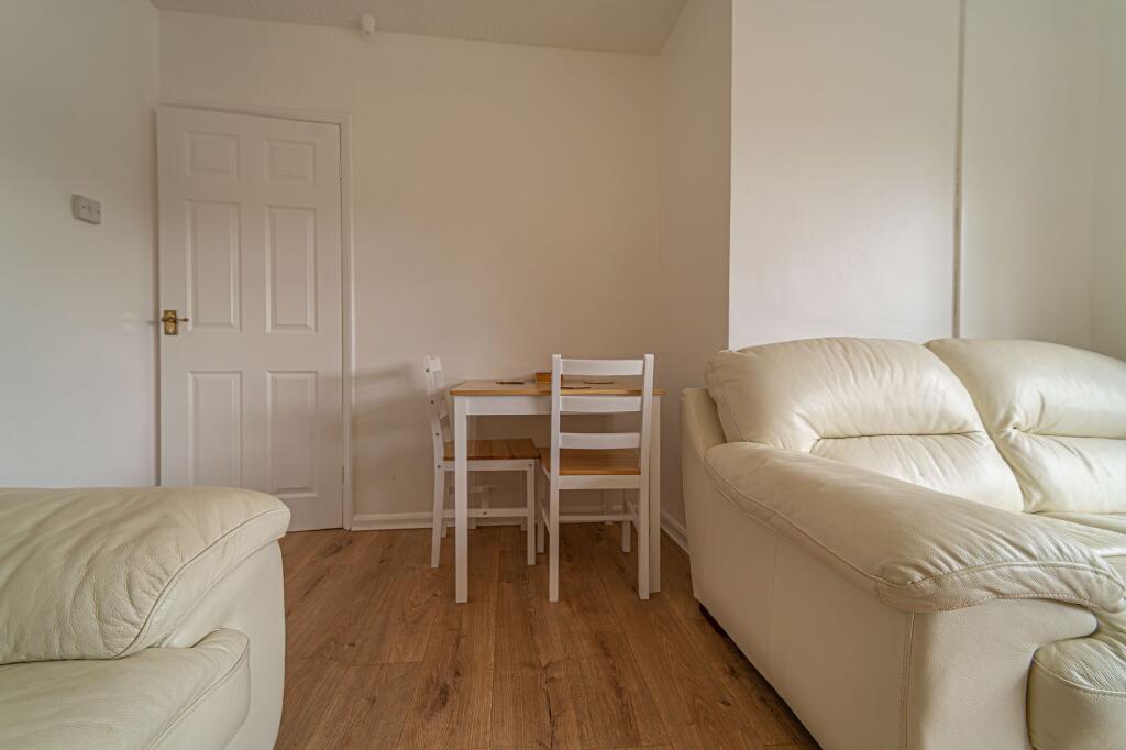 This is a two-bedroom flat in Abercarn, offered at £100,000. The property benefits from a garden and is located within reasonable distance of local schools and transportation. While the interior is generally well-maintained, some areas like the bathroom could use updating. The price per square foot is above the local average, but the inclusion of a garden makes it a reasonable value.