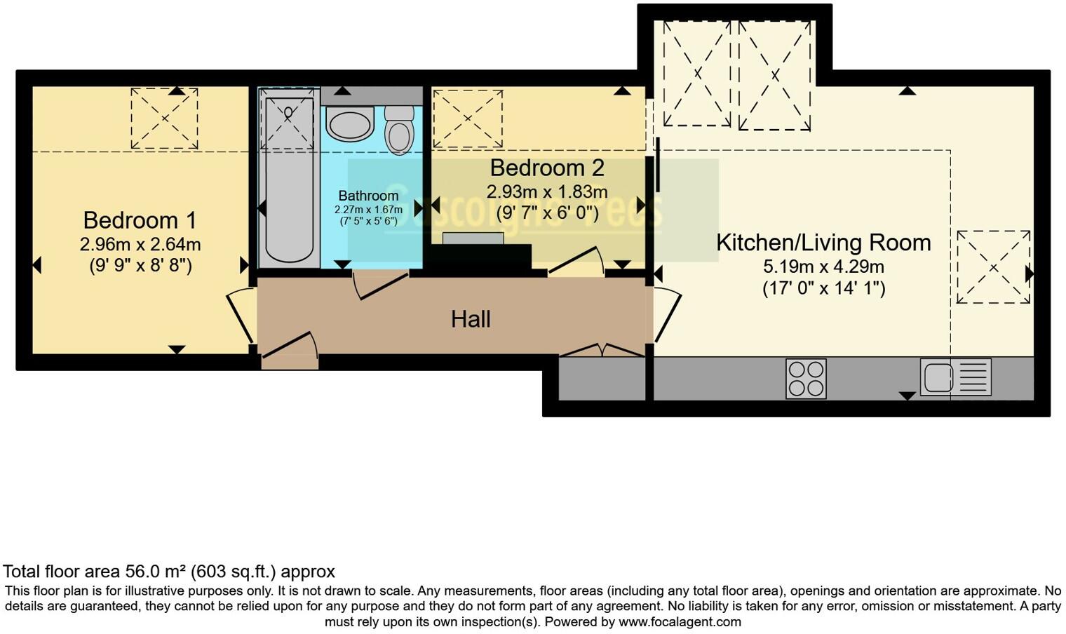 This is a two-bedroom flat located in Leatherhead, Surrey. The property appears to be in good condition, with modern fixtures and fittings. It benefits from its proximity to local schools and transport links. The flat is competitively priced, aligning with the average price per square foot in the area. While the property lacks a private garden, it is situated within communal grounds.