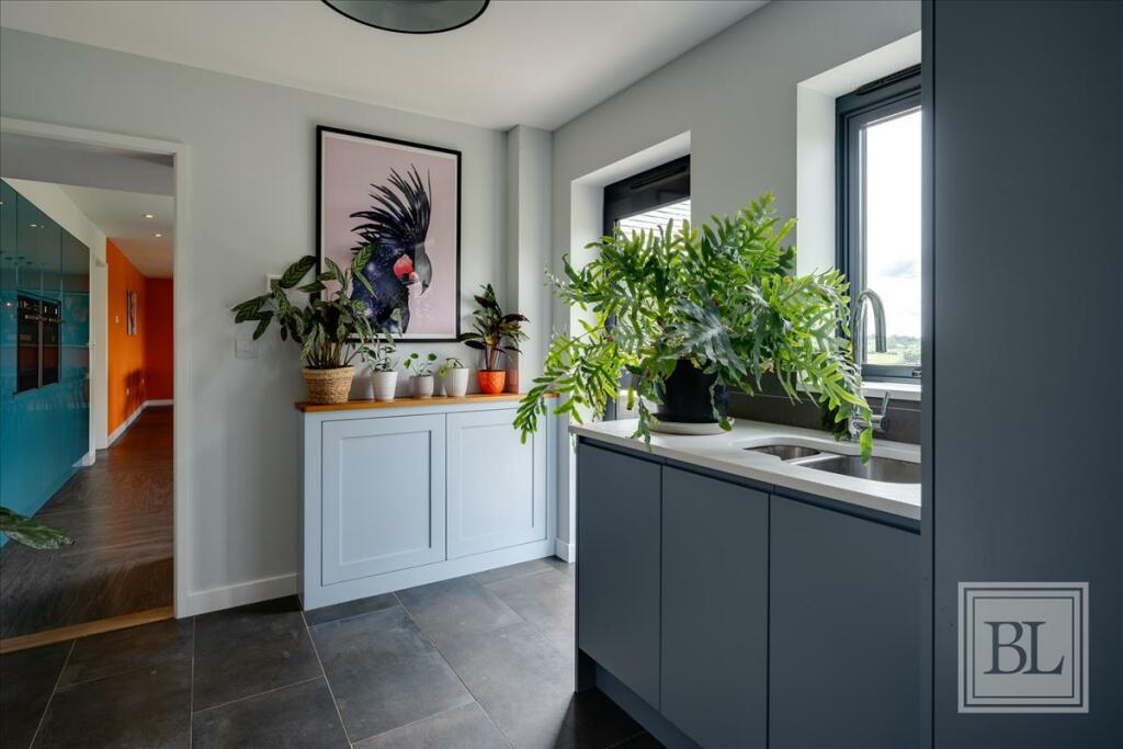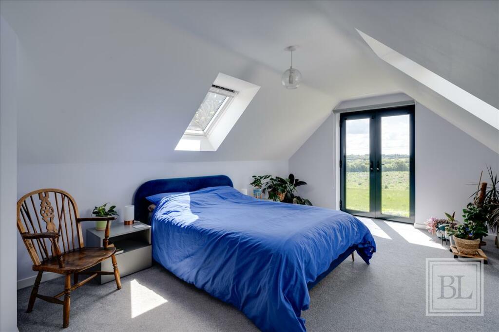 An impressive individual home on a 0.20-acre plot with glorious views to the south. 2780 sqft of accommodation includes a vast open-plan kitchen/living/dining space, plus two further reception rooms. On a quiet country lane and surrounded by footpaths. Chain free.