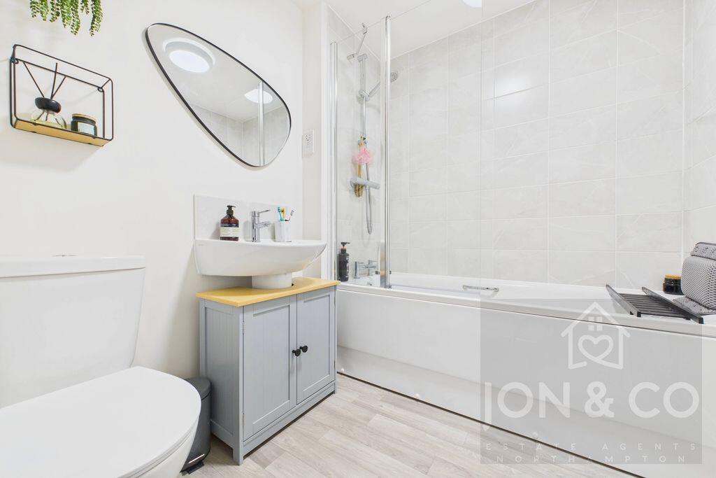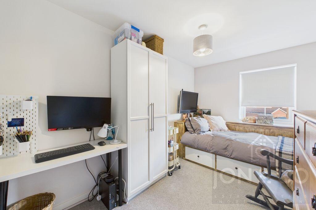 This is a three-bedroom terraced house located in Overstone Gate, Moulton. The property appears to be in good condition, with a modern kitchen and bathroom. It also benefits from a garden with a shed. The property is located within a reasonable distance of local schools. The asking price of £110,250 seems very competitive compared to the average property price in the area.