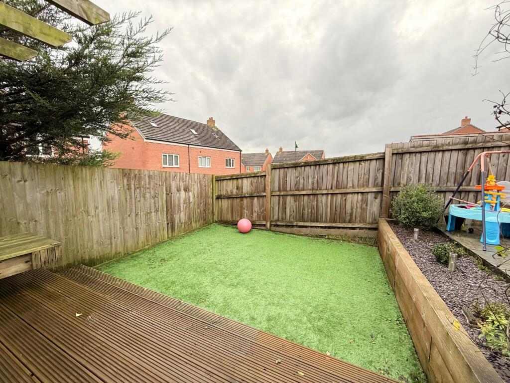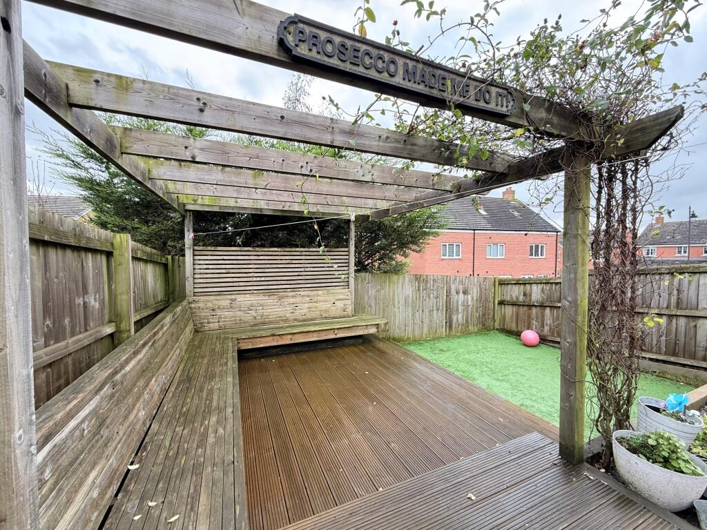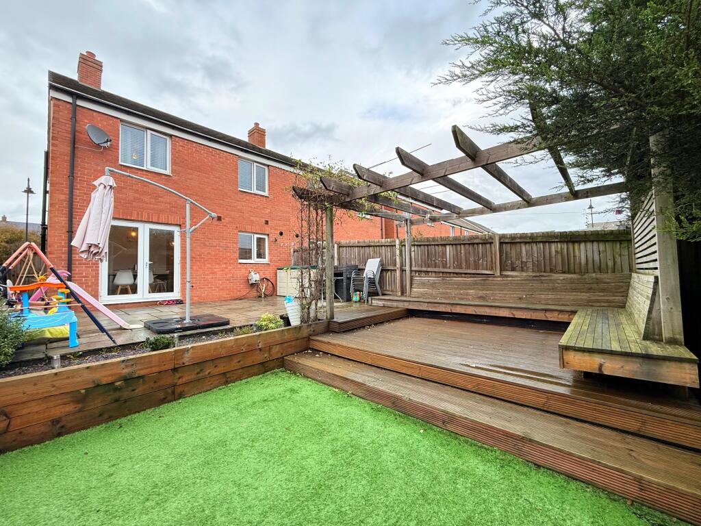 Beautifully presented end-terraced home in sought-after Coity. Built in 2018 with garage, parking & side access. Features 3 bedrooms, ensuite, kitchen/diner with patio doors, generous garden with patio, pergola & artificial lawn. Close to school, Co-op, pharmacy & cycle path.