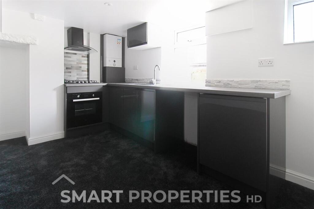 Two Bedroom Property available in Fartown newly refurbished. Key Features: - Modern basement kitchen with sleek dark gloss units, integrated oven, gas hob, extractor hood, and contemporary tiled splashback. - Fully refurbished throughout with fresh white décor and new carpets.