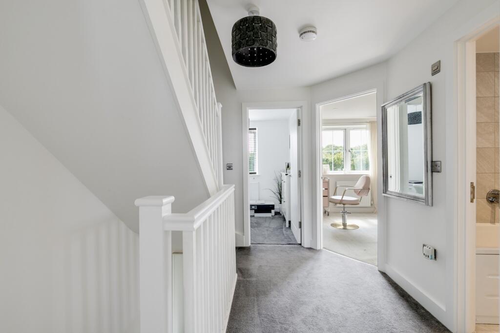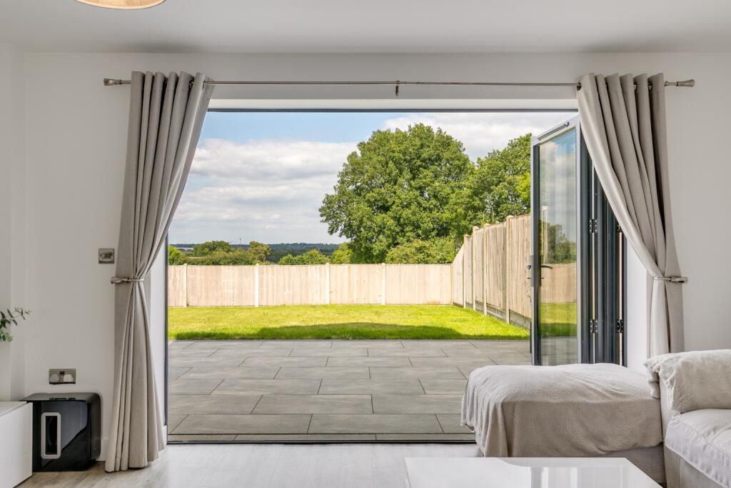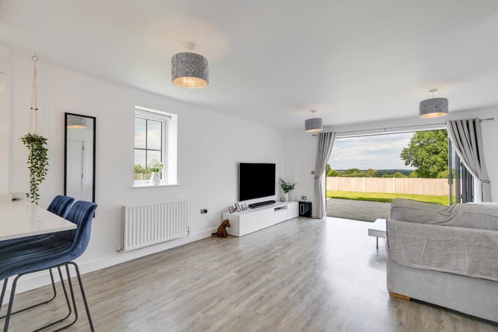 Immaculately presented family home with stunning countryside views, potential for extension, two en-suites, and an enviable garden. Built by renowned builders Peter David Homes.