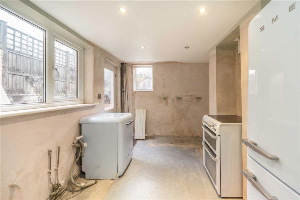 This is a one-bedroom flat located on Millbrook Road in Brixton. The property benefits from its proximity to transportation and schools. However, the flat requires significant renovation, as evidenced by the exposed plaster and dated fixtures. It features a garden and patio, providing outdoor space. The price is reasonable for the area, but potential buyers should factor in renovation costs.