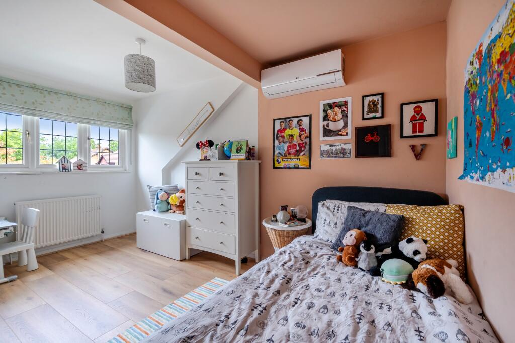 This is a detached property in New Haw, Surrey, featuring four bedrooms and two bathrooms. The house offers 1,560.71 sqft of living space and appears to be in good condition, with modern interiors and a well-maintained garden. The location is convenient, with nearby schools and transportation links. The property includes parking and a garage, adding to its appeal. While the listing price is above the area average, the property’s size, condition, and desirable location justify the cost. Overall, this property presents a solid opportunity for potential buyers seeking a family home in a sought-after area.