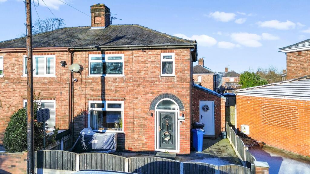 This is a three-bedroom semi-detached house in Warrington. The property benefits from a modern kitchen and bathroom, and a good-sized garden with a shed. The location is convenient for schools and transportation. While generally well-maintained, some areas could use cosmetic updates. The property is a traditional build and has been modernised.