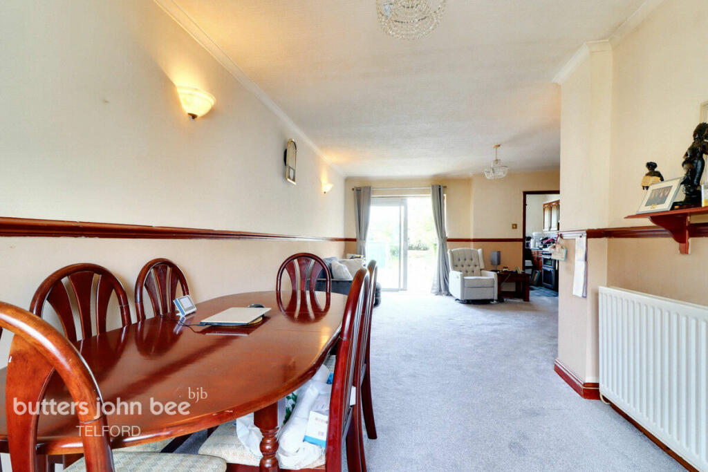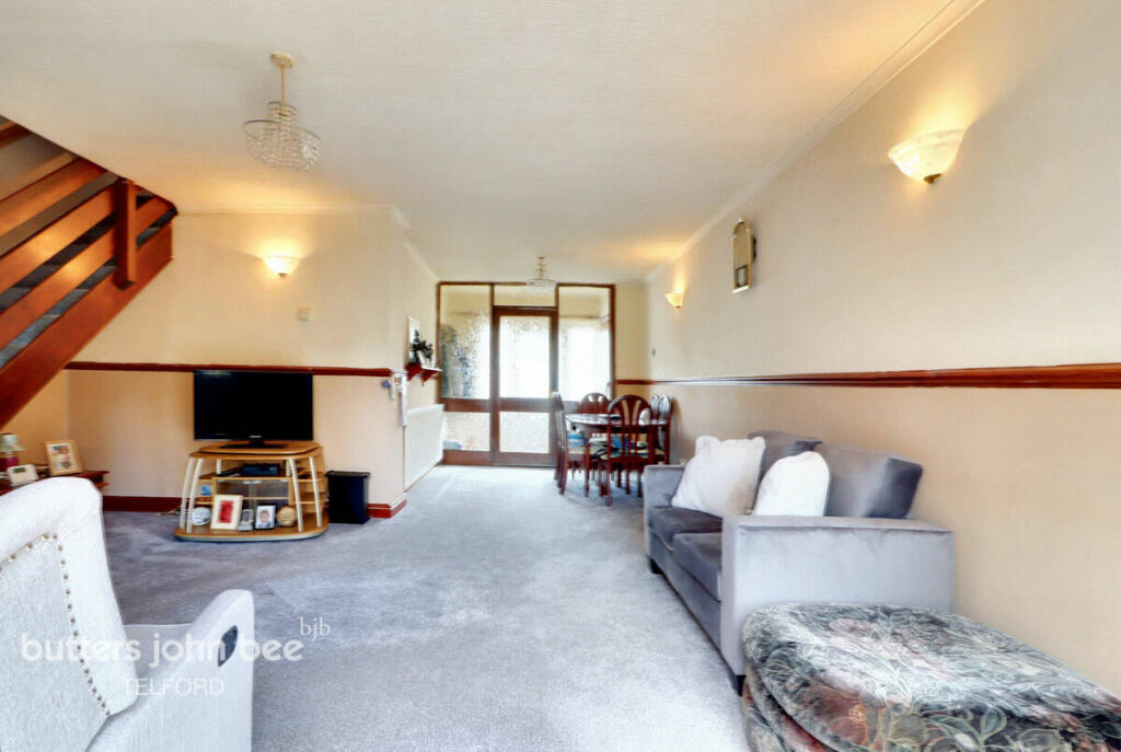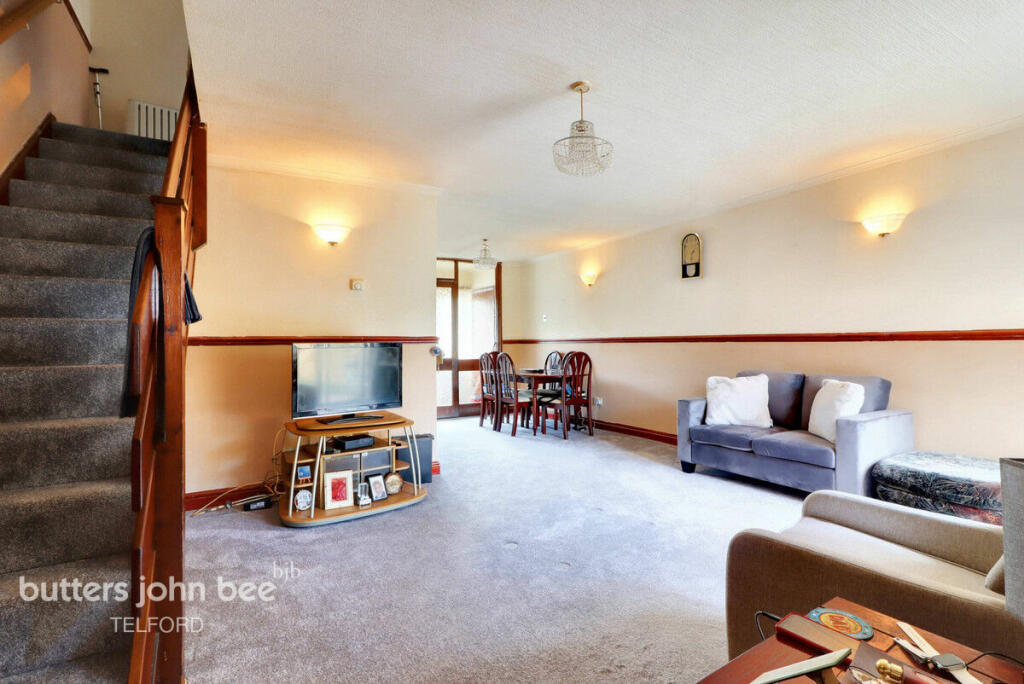 Spacious family home with open plan living downstairs and three bedrooms and a bathroom upstairs. Garage, and drive and larger than average enclosed rear garden. Situated in Donnington, within half a mile of Asda, Donnington medical/dental practice and local shops including Home & Bargains