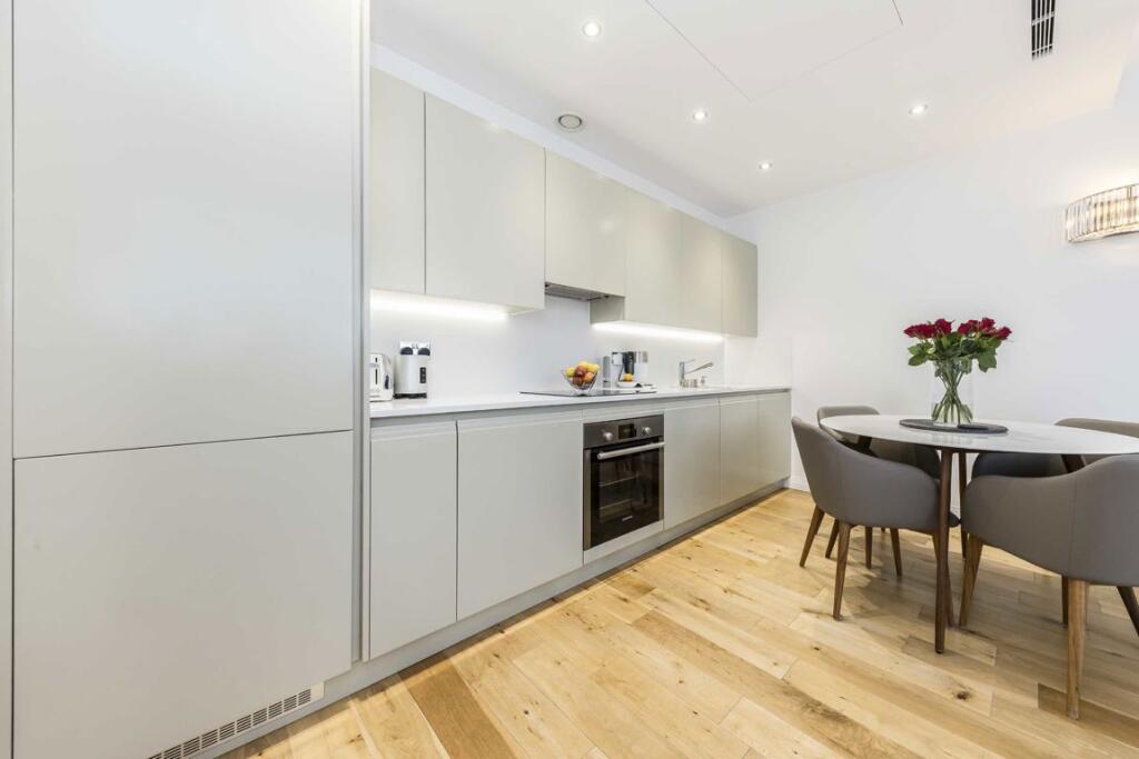 This one bedroom apartment has been renovated throughout to the highest standard, featuring custom-made Hoover fittings and upgraded Bosch appliances. Additional benefits include access to a communal terrace.