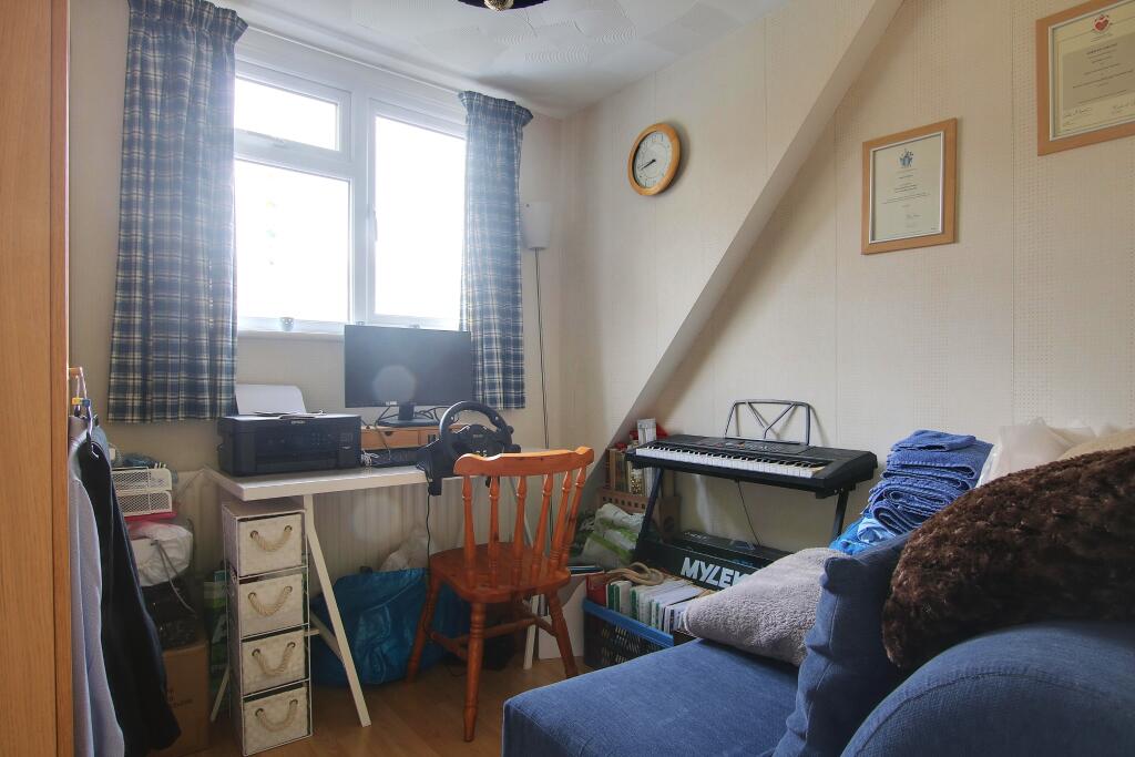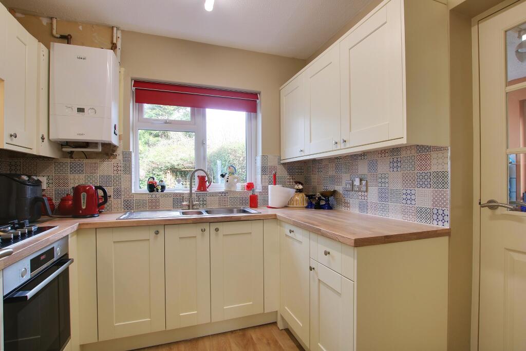 The images show a property that appears to be in generally good condition. While some rooms show their age with dated wallpaper and decor, there is no evidence of significant disrepair. The kitchen and bathroom seem to have been recently updated. The property benefits from a conservatory, extending the living space and offering additional light. The garden is a good size and is well-maintained.