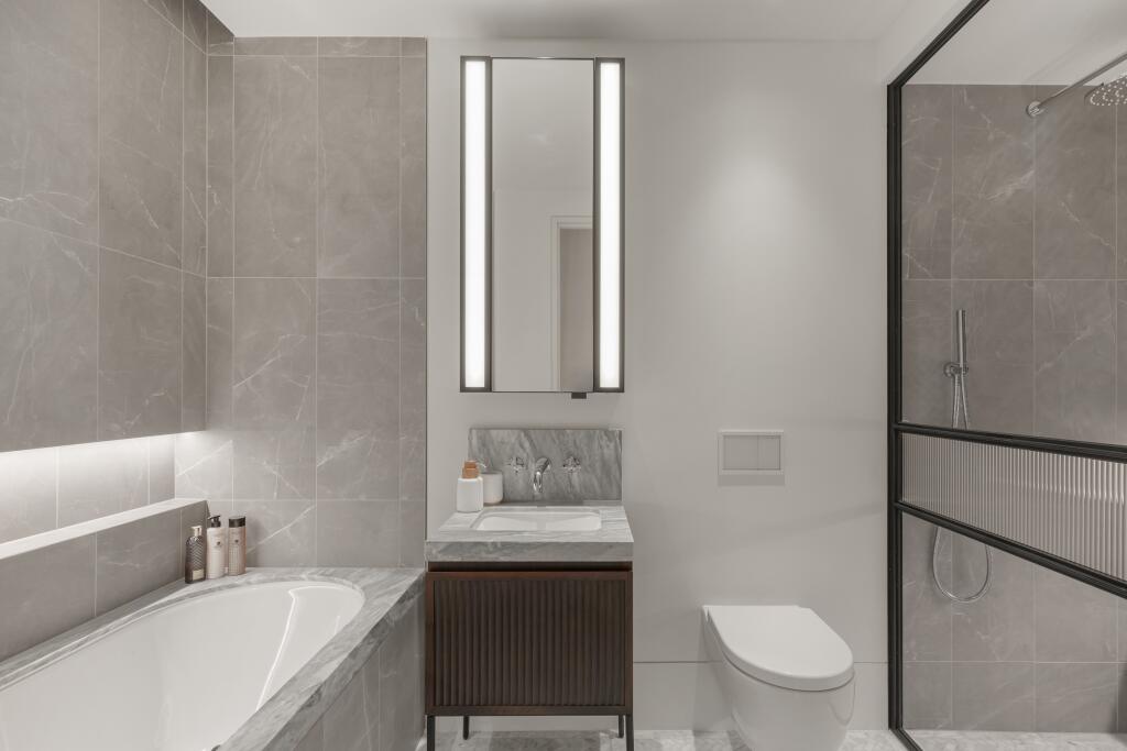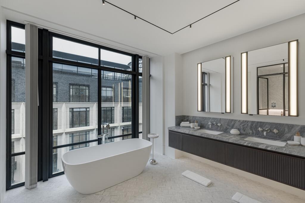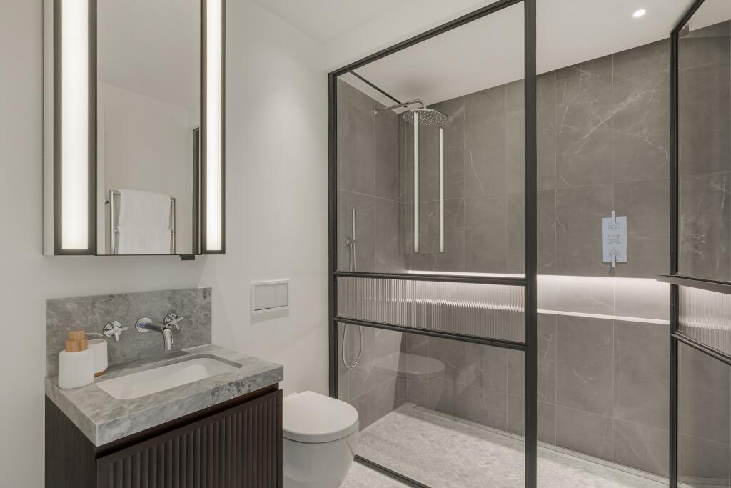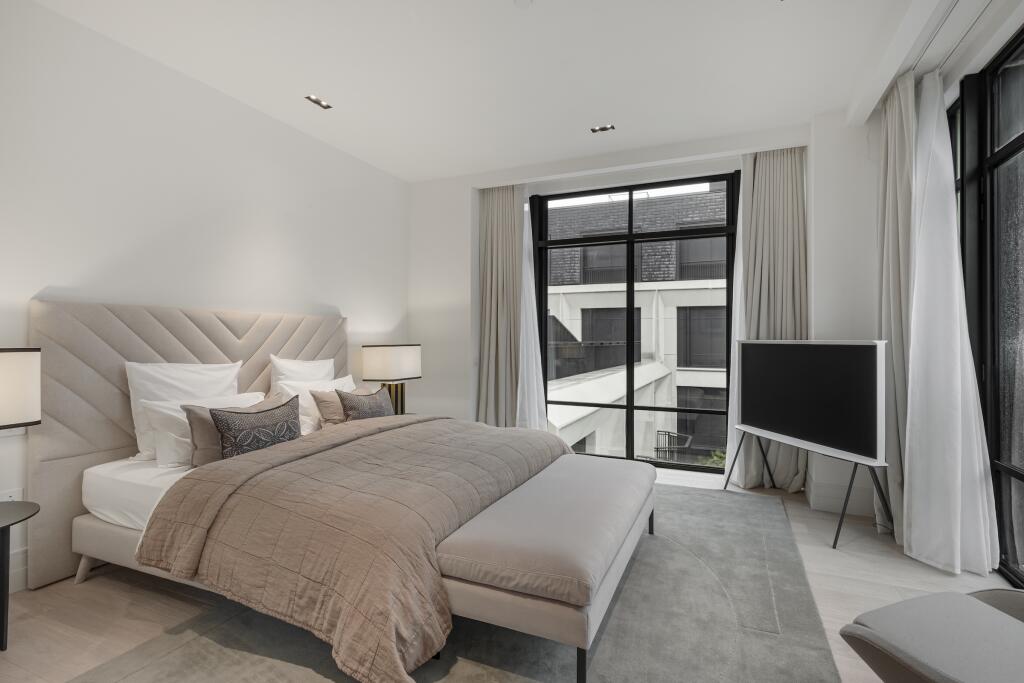 The interior design is contemporary and neutral, with high-quality finishes and fixtures throughout. The bedrooms are generously sized and provide comfortable and private spaces. Each features ensuite bathroom access with modern fitments. The location in Lancaster Gate is another key selling point, offering access to a variety of shops, restaurants, and green spaces within easy reach of central London.