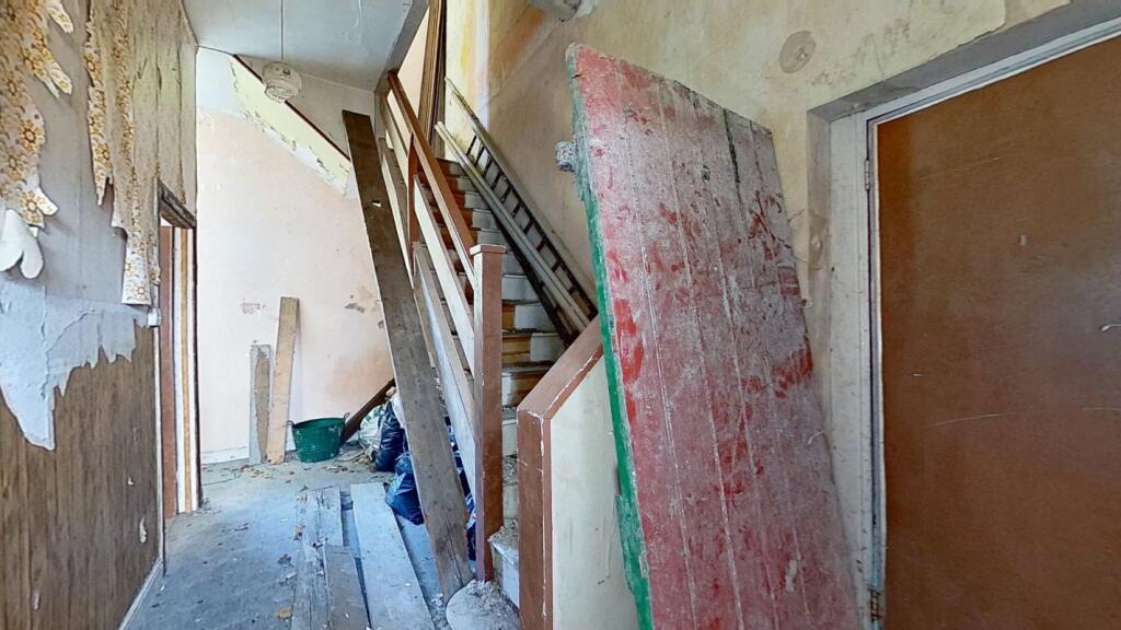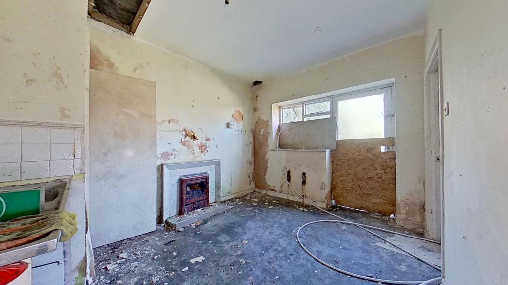 The property is located in Penclawdd, Swansea, a village in West Glamorgan, Wales. Penclawdd Primary School is conveniently located nearby. The closest train station is Bynea, which is 3.69 KM away. The images suggest that the property is in poor condition and requires extensive renovation. There is visible damage to the walls, ceilings, and floors. The property does appear to have some land, although it is overgrown and requires landscaping. The list price is £40,000. The average price per square foot in the area is £289. Given the average property price in the area is £320,294. The property appears to be listed at a significantly lower price point, which may reflect the extensive renovation work required.