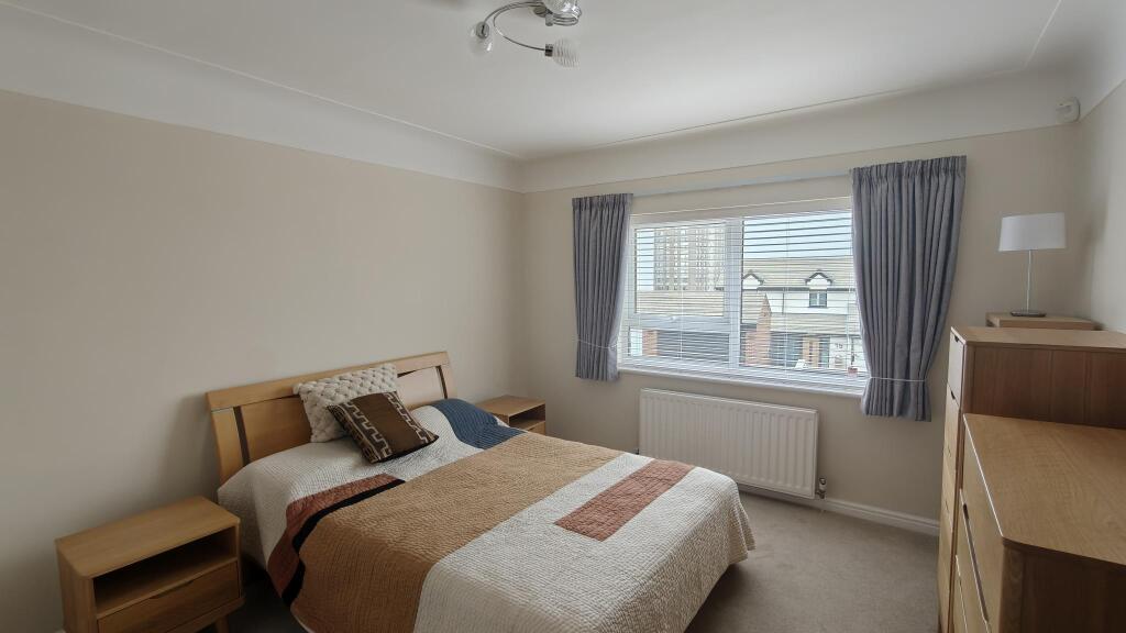 This is a two-bedroom ground floor flat in New Brighton, Wallasey. The property appears to be in good condition, with a modern kitchen and bathroom. It benefits from a garage and communal garden space. The location is convenient, with access to local amenities, schools, and transportation links. The asking price of £220,000 seems reasonable for the area and the condition of the property.
