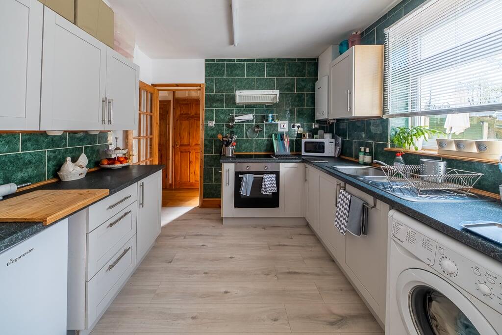 Based on the provided images, the property appears to be in reasonable condition, although some areas could benefit from modernisation. The kitchen, in particular, shows signs of wear and tear, with dated tiling and fixtures. The bathrooms also appear slightly dated. The property does have a garden, although it is somewhat unkempt and could benefit from some landscaping. The overall condition of the property is acceptable but not exceptional.