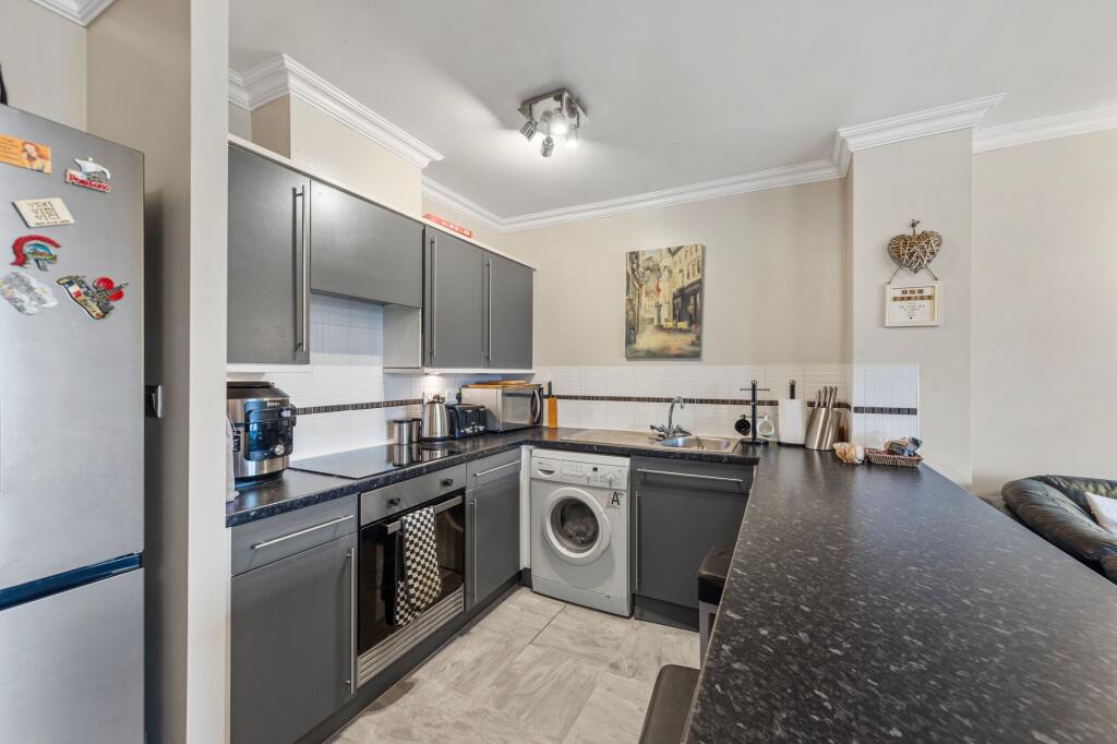 This two-bedroom apartment in Moorside, Warrington, is presented in good condition and offers a modern living space. The open-plan design creates a spacious feel, and the kitchen and bathrooms appear well-maintained. The property benefits from allocated parking, which is a valuable asset in this area. The location is convenient, with several schools and train stations within a reasonable distance. However, the lack of a garden or any significant outdoor space is a notable drawback. The proximity to the river provides attractive views, but the immediate surroundings appear to include industrial elements. The price of £135,000 seems competitive when compared to similar properties in the area, although the absence of outdoor space might influence buyer preferences. Overall, this property would likely appeal to first-time buyers, young professionals, or those prioritizing a modern, well-maintained apartment in a convenient location. The absence of a garden will limit its appeal to families or buyers seeking more outdoor space.