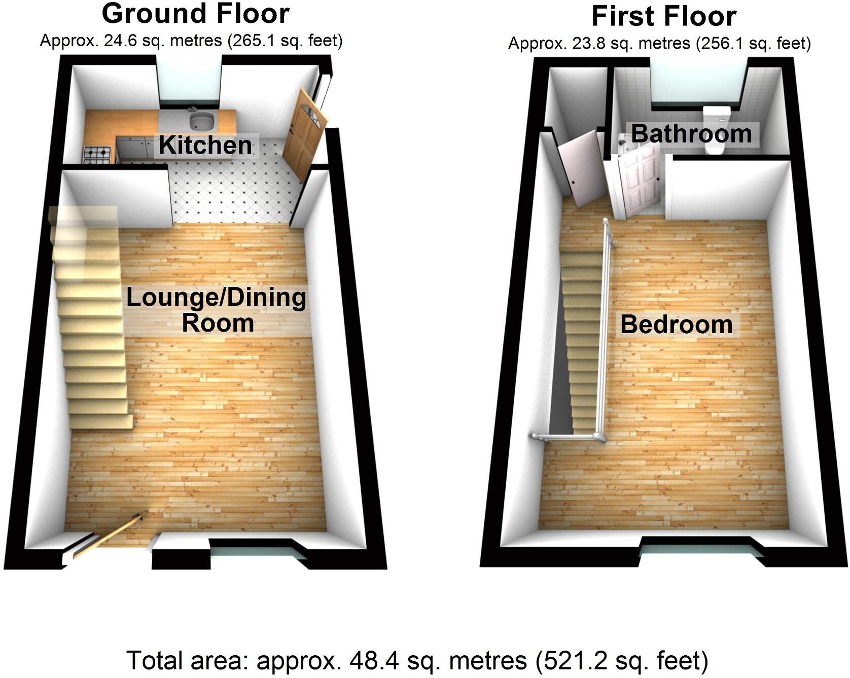 This is a semi-detached property located on Lewis Street in Pontrhydyfen, Port Talbot. It features one bedroom and one bathroom, with a total square footage of approximately 521 sq ft. The property is listed for £70,000. The images suggest that the property requires significant renovation. The property is located in a village setting, a few miles from larger towns. The listing price is considerably lower than the average for the area, reflecting the property’s condition.