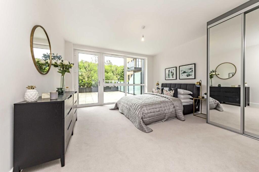 An executive ground floor apartment finished to the highest standard, offering an impressive private terrace with breathtaking River Thames views. The property features a spacious open-plan reception room, two double bedrooms, two luxury bathrooms and allocated parking. Perfect for entertaining a...