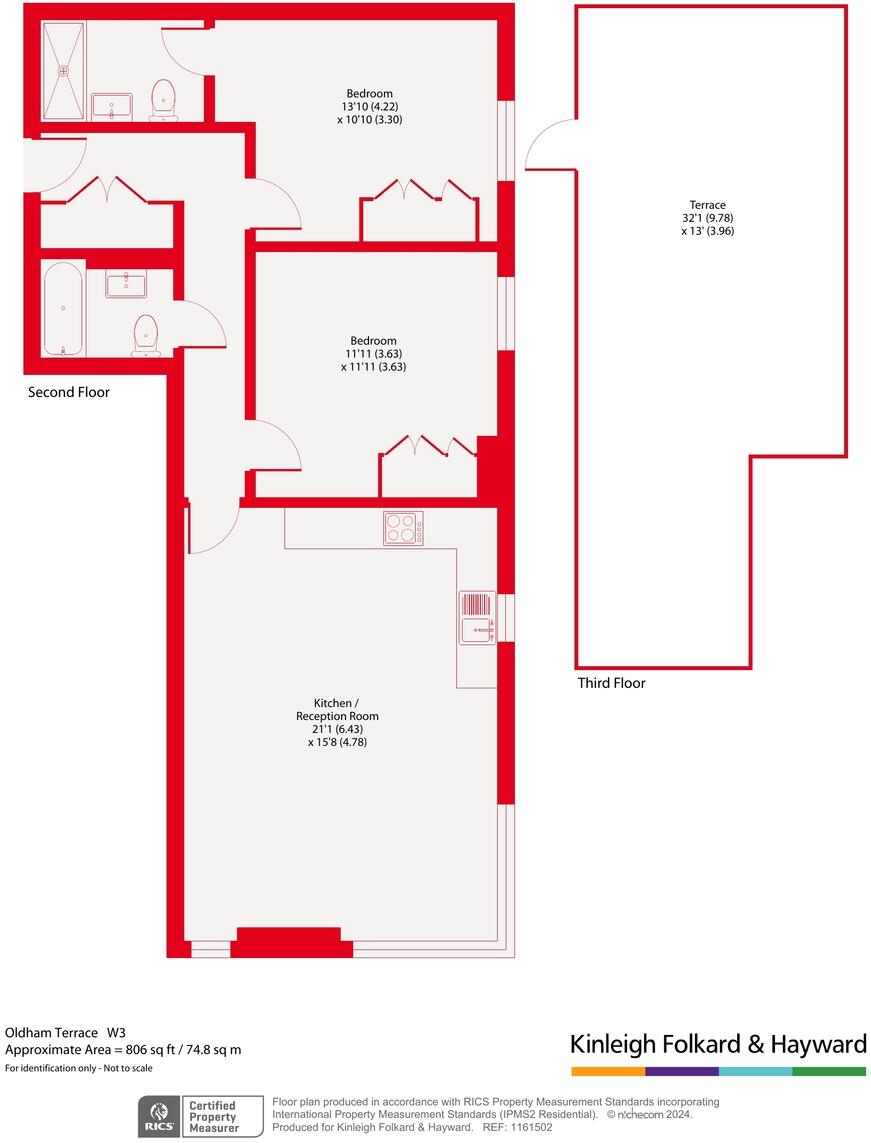 This property is a modern two bedroom flat located in South Acton, London. The flat is in excellent condition and benefits from a private roof terrace offering views of the surrounding area. The property is well-located with good transport links, including proximity to South Acton Overground station (0.70km) and several bus routes. There are also a number of highly-rated schools within a short distance, including Ark Priory Primary Academy (Outstanding, 0.39km) and Derwentwater Primary School (Good, 0.48km). The property itself is modern with a contemporary design and high-quality fixtures and fittings. The open plan living area is spacious and bright, and the kitchen is well-equipped. The two bedrooms are of a good size, and the bathrooms are modern and stylish. The flat is well-presented and would make an ideal home for a young professional couple or a small family. The list price of £500,000 is slightly below the average price for the area (£651,176), and given the condition and location of the property, it represents good value for money. However, it is important to note that the average price per sqft is £717, and this property is only £509 per sqft. This may be due to the smaller plot size of the property (806 sqft).