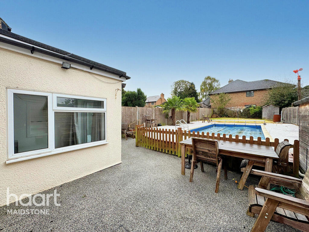 This spacious and well located three bedroom detached bungalow definitely makes a splash with an additional useful loft room and great sized garden with heated swimming pool situated in a popular residential setting close to Maidstone town centre
